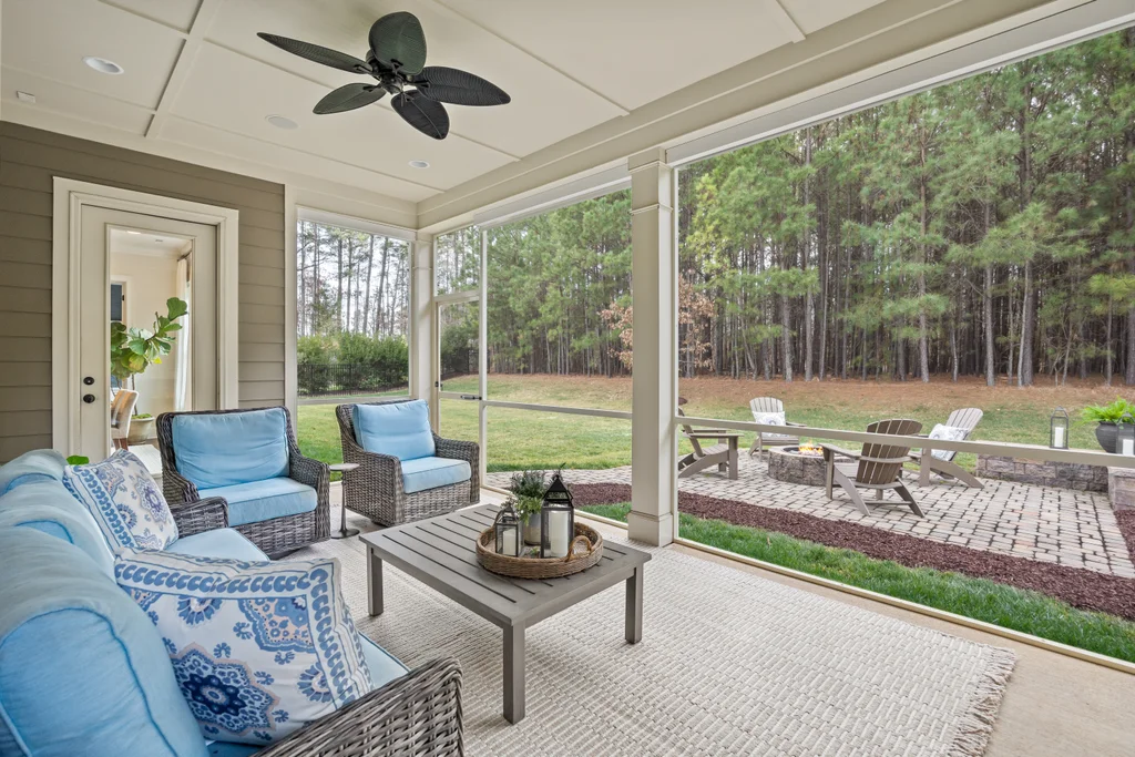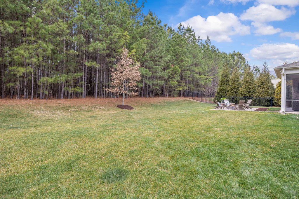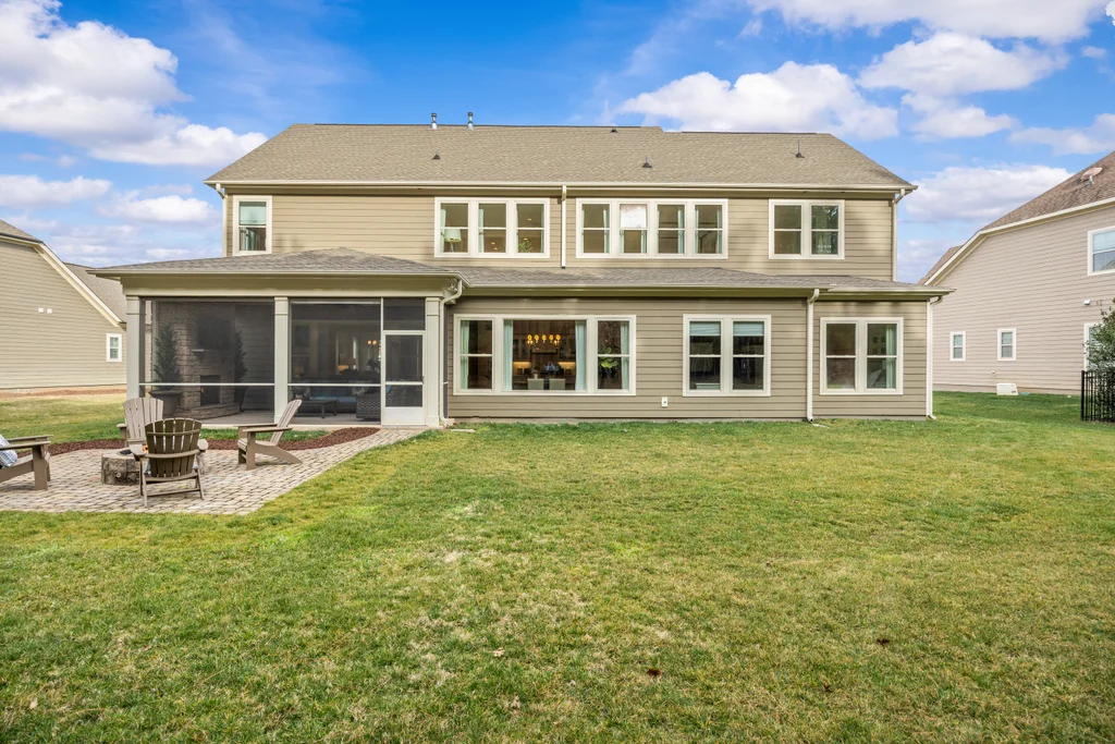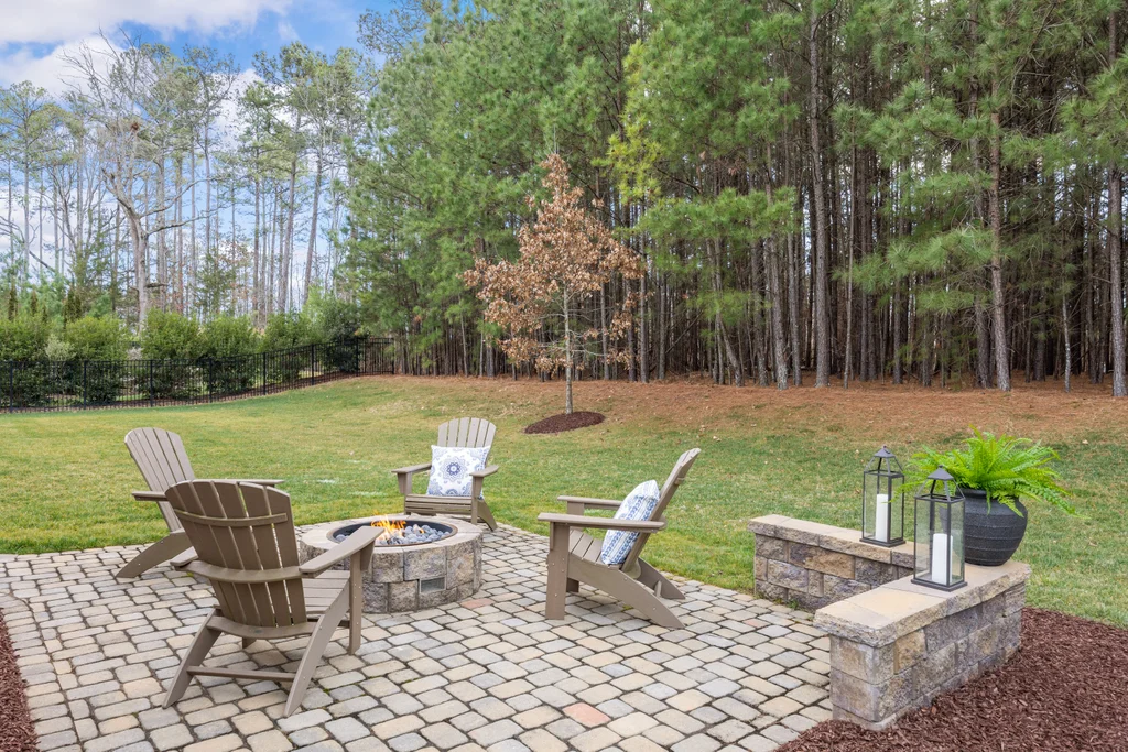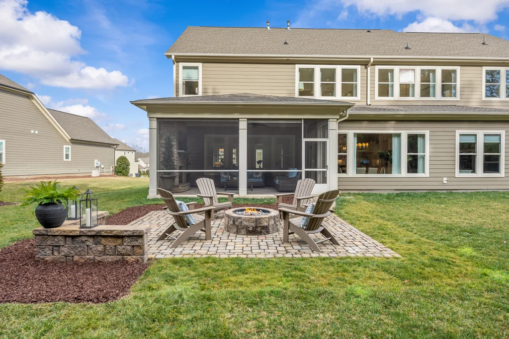 Outdoor living truly shines with a screened porch featuring a stone fireplace, plus a paver patio with gas fire pit — ideal for year-round enjoyment. The .3-acre homesite backs to HOA-owned wooded land, offering exceptional privacy, space for play, and potential for a future pool. A three-car garage completes the home, conveniently located near Matthews, Fort Mill, and the greater metro area.