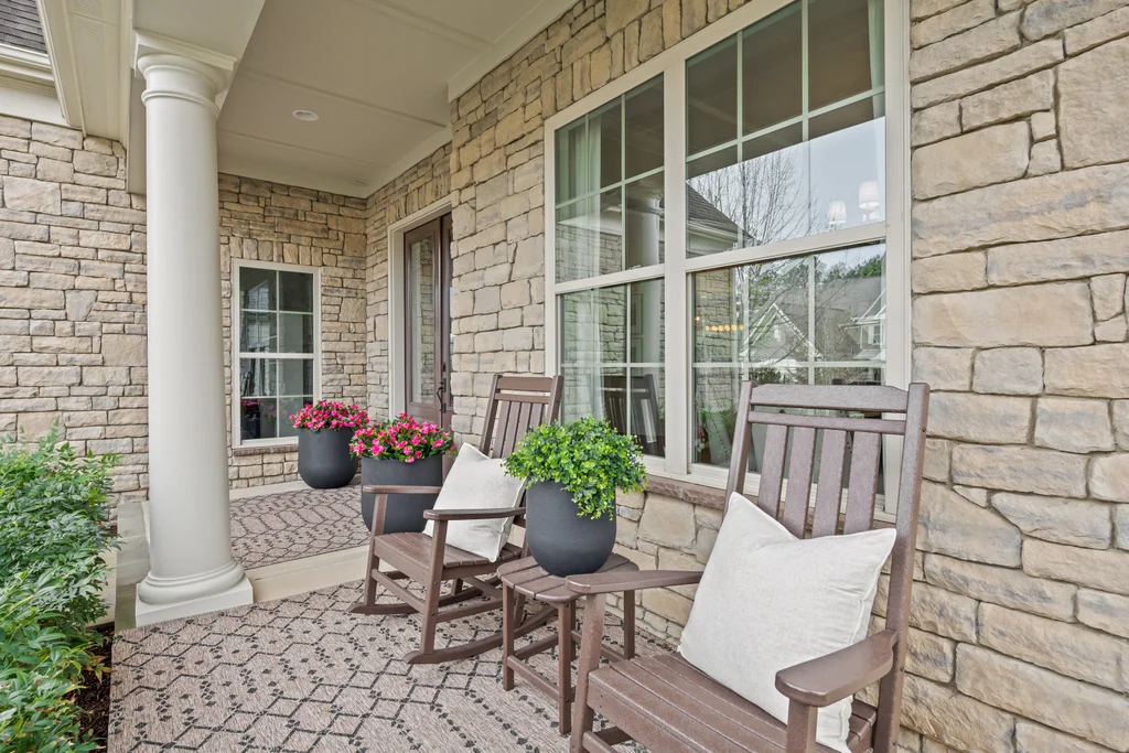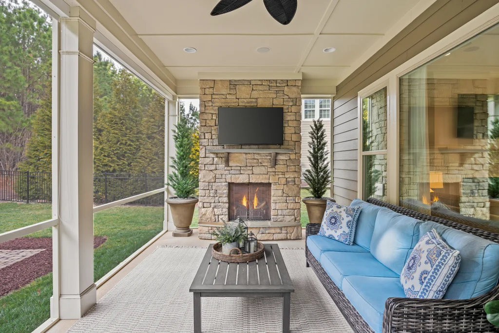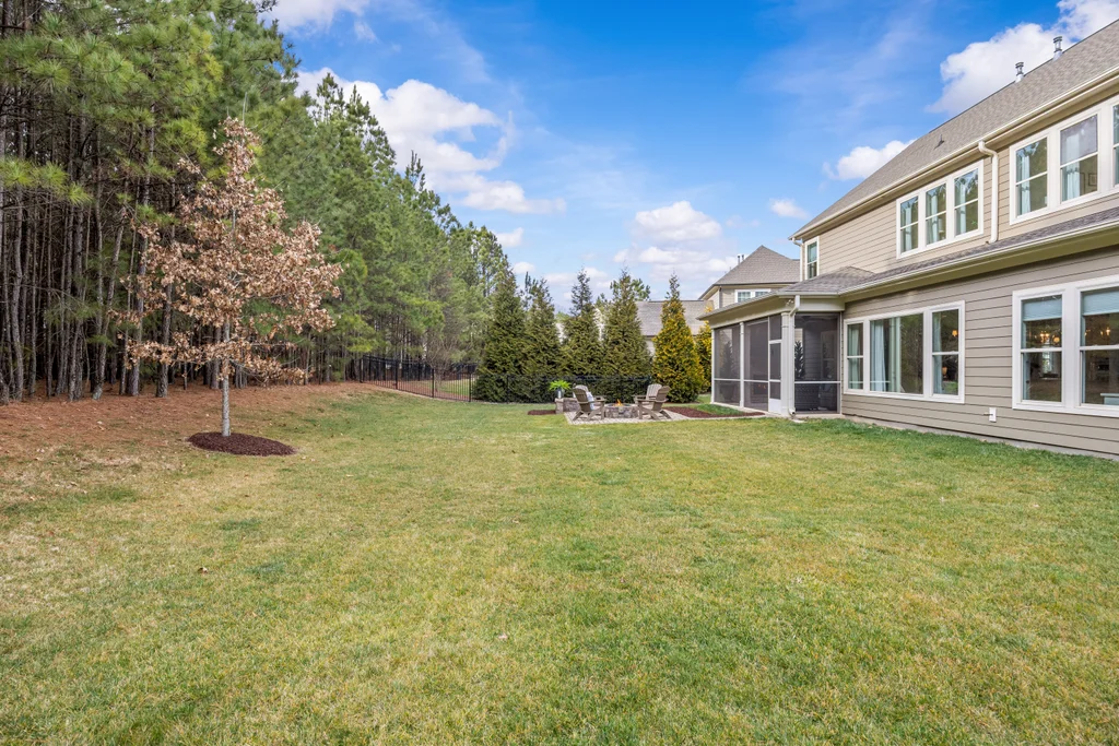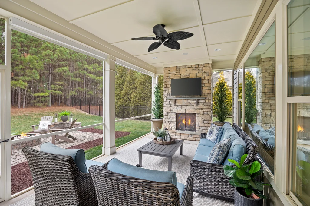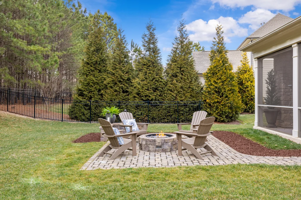 Outdoor living truly shines with a screened porch featuring a stone fireplace, plus a paver patio with gas fire pit — ideal for year-round enjoyment. The .3-acre homesite backs to HOA-owned wooded land, offering exceptional privacy, space for play, and potential for a future pool. A three-car garage completes the home, conveniently located near Matthews, Fort Mill, and the greater metro area.