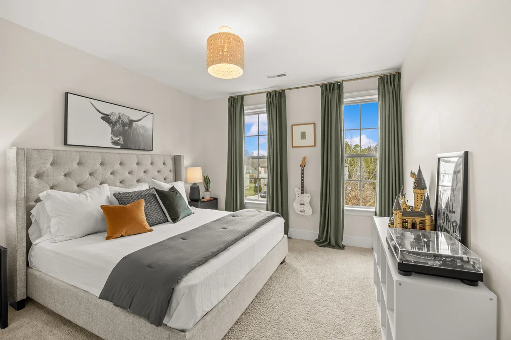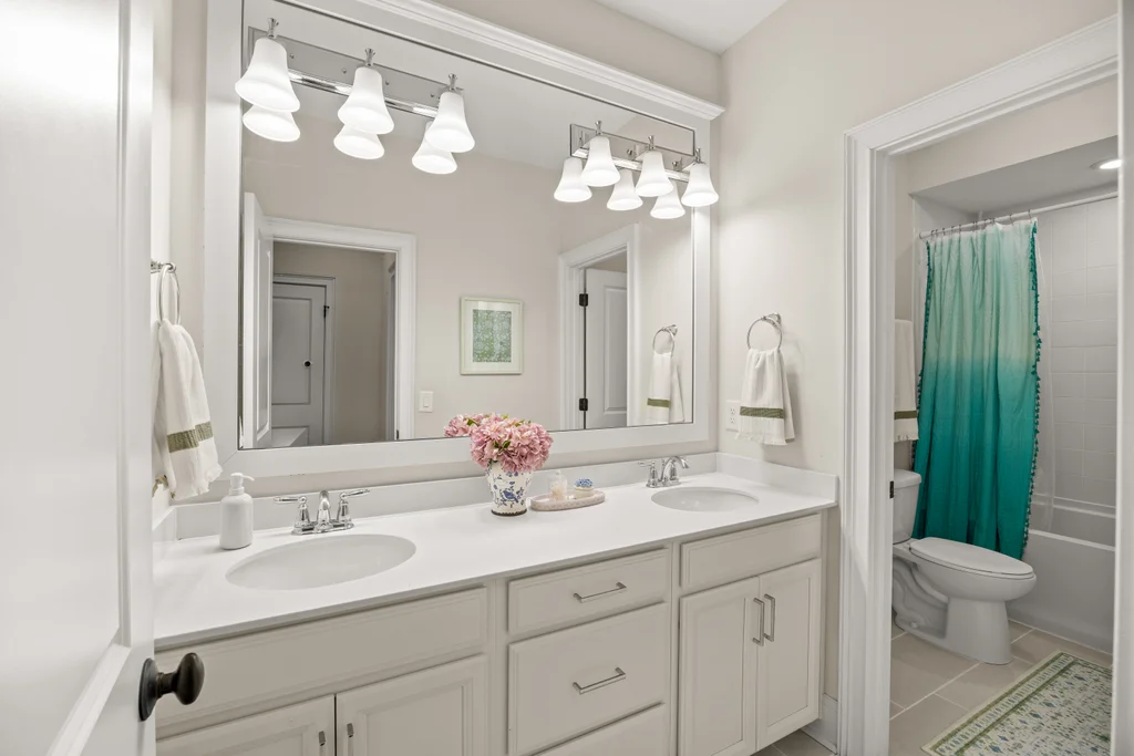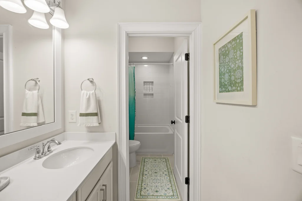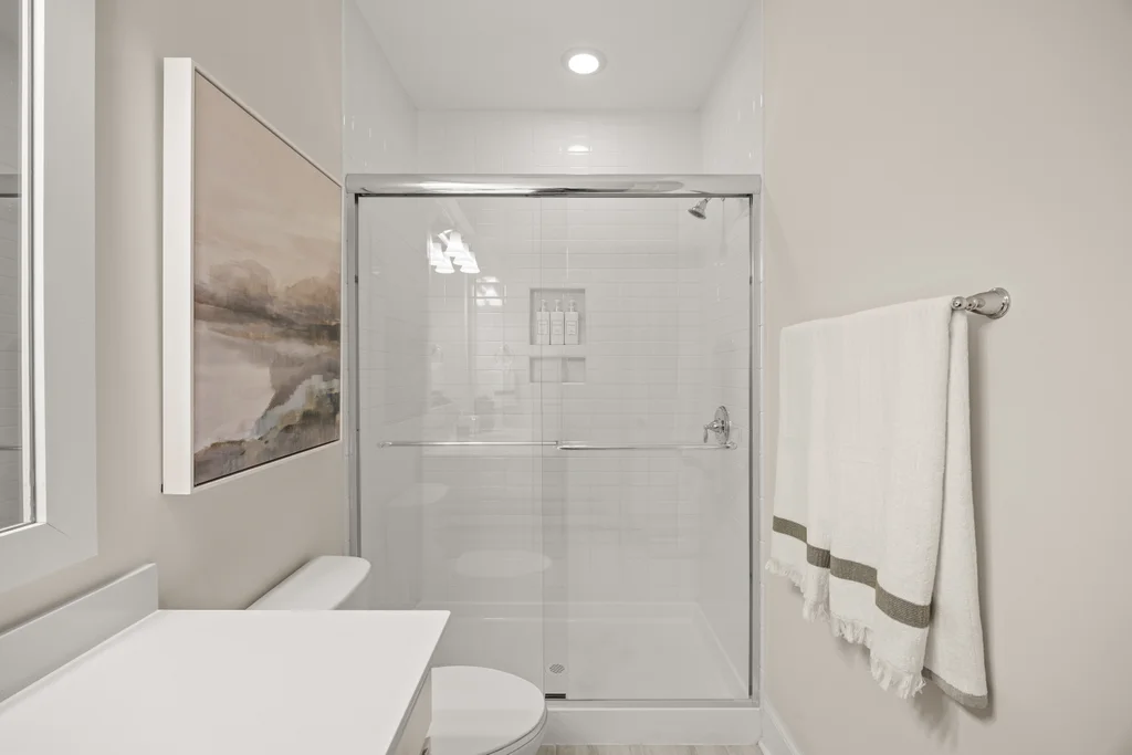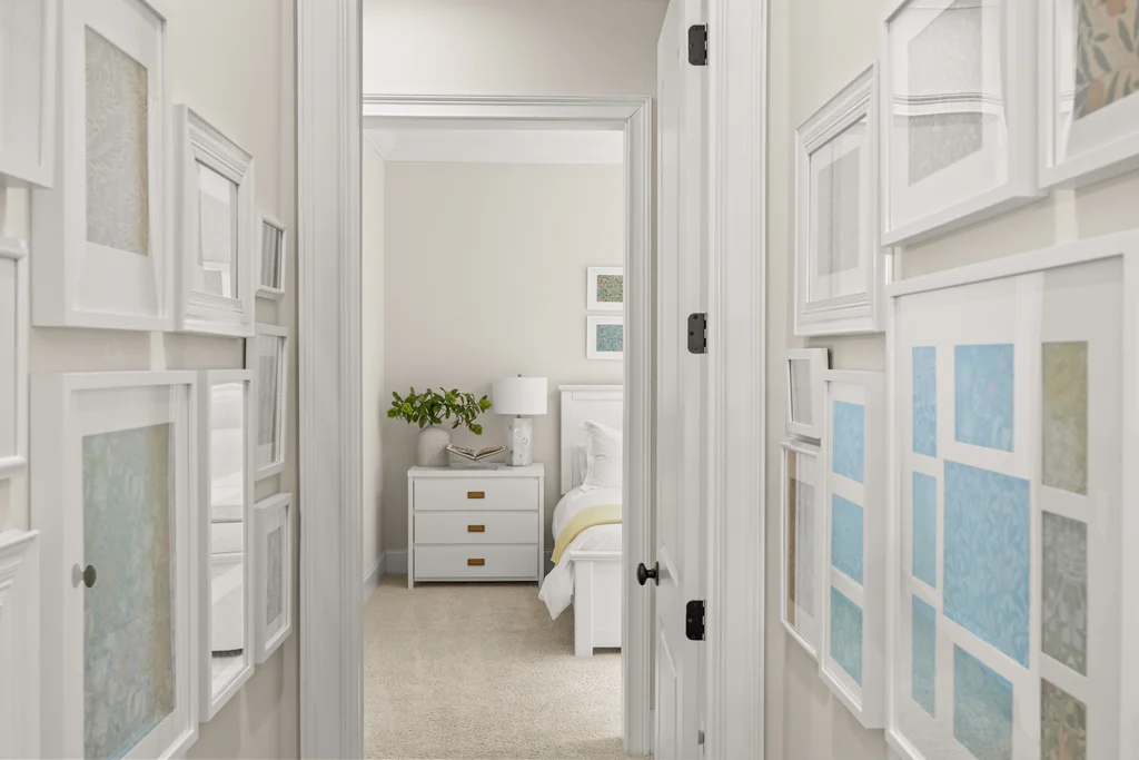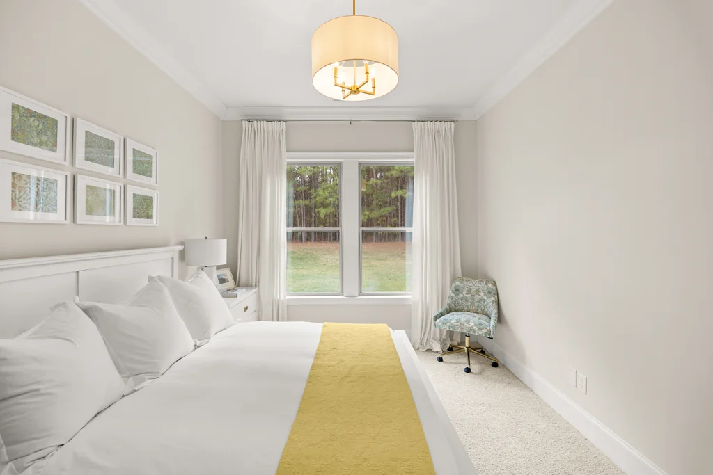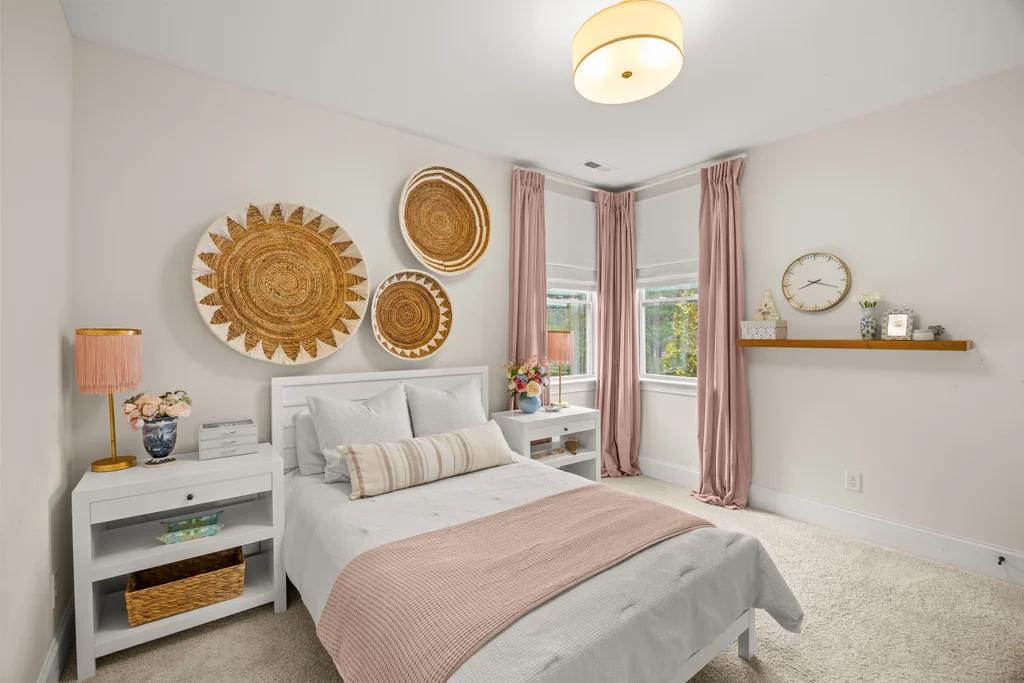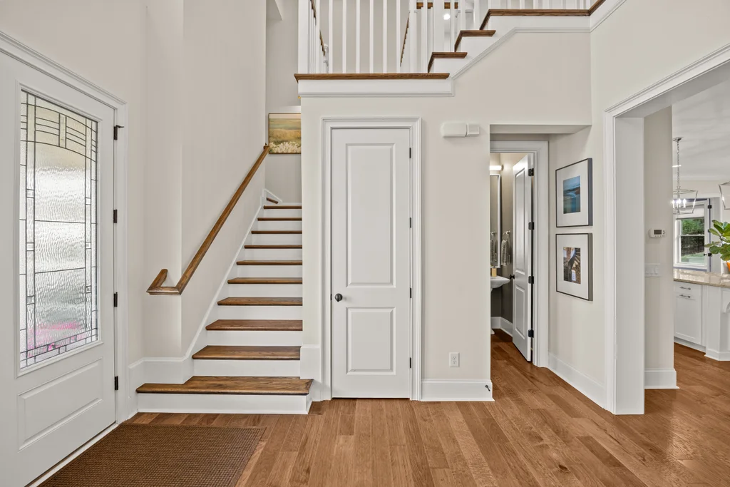 Tucked off the rear hallway, a private guest suite offers flexibility for visitors. A custom drop zone and built-in desk add practical efficiency to daily routines.
