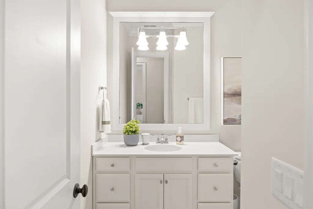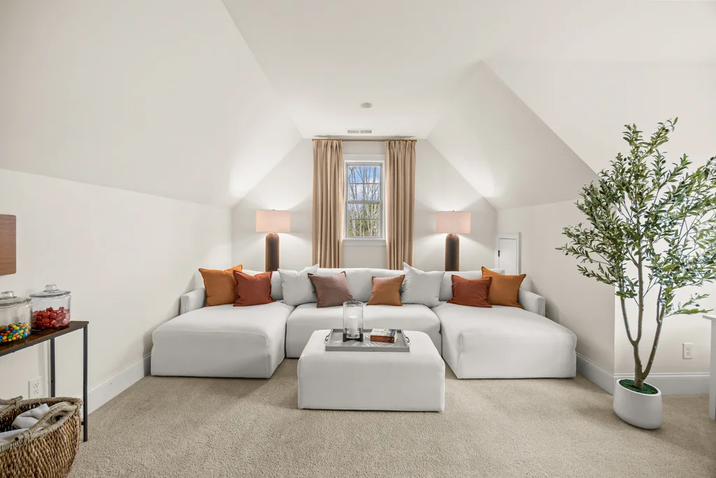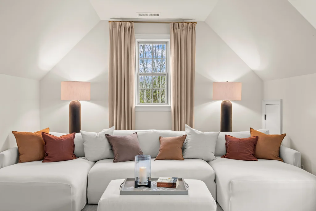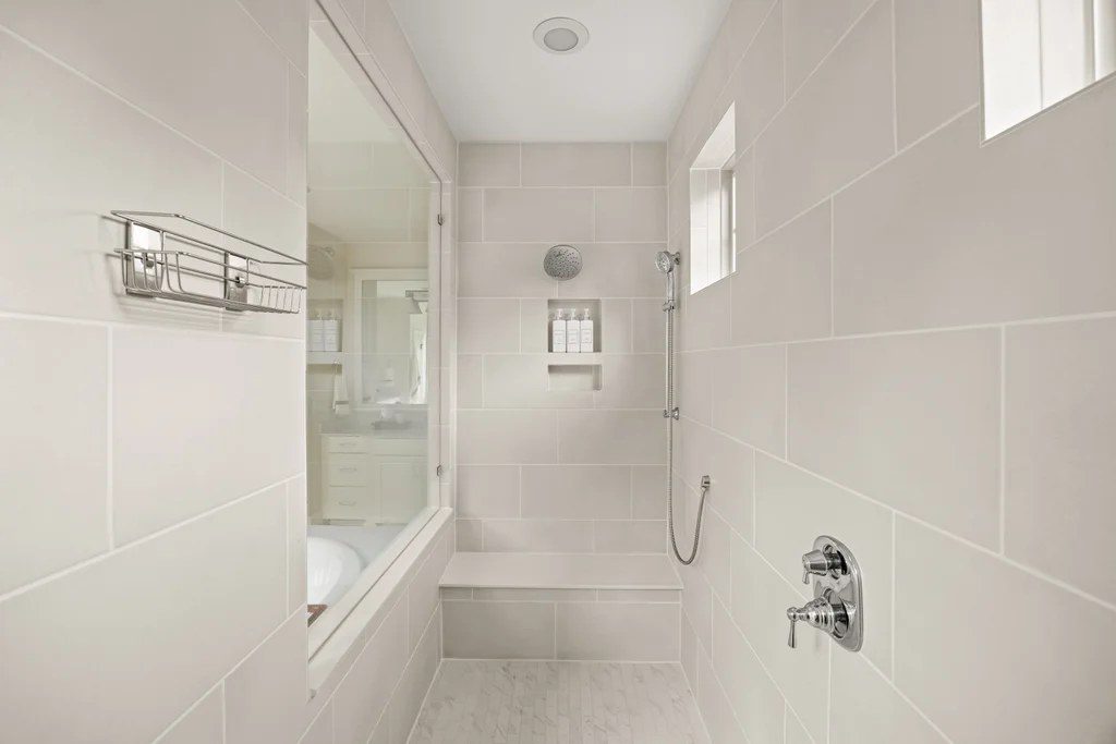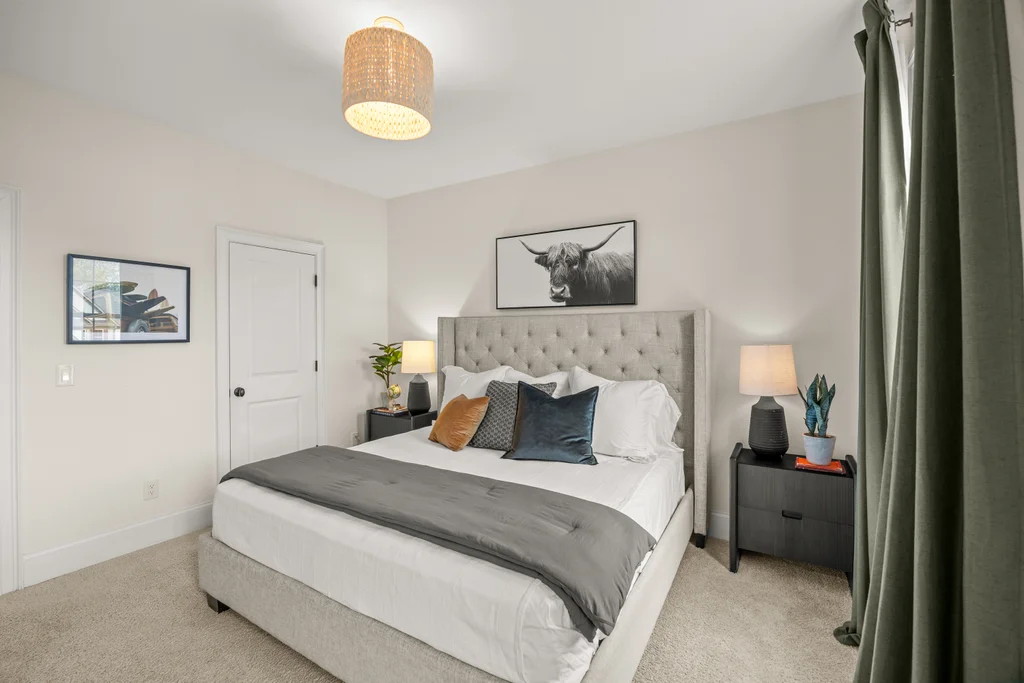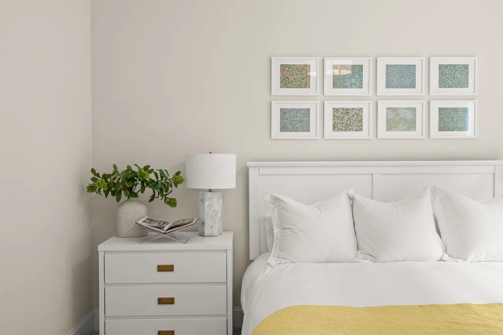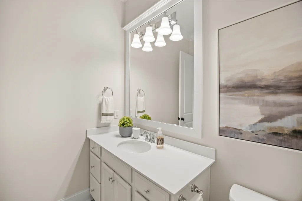 Tucked off the rear hallway, a private guest suite offers flexibility for visitors. A custom drop zone and built-in desk add practical efficiency to daily routines.