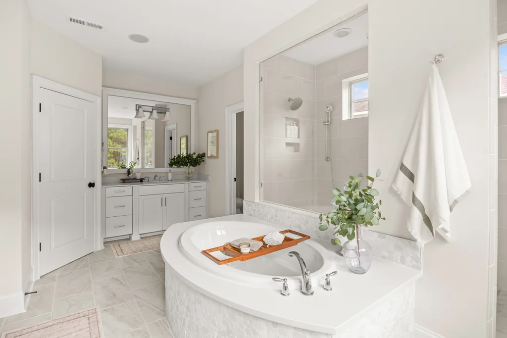 Upstairs, the expansive primary suite serves as a retreat with spa-style bath including soaking tub, oversized dual vanity, walk-in shower room, and custom walk-in closet. Two additional bedrooms feature walk-in closets and abundant natural light. A central loft provides additional living space, while the oversized bonus room functions beautifully as a fifth bedroom, media room, or guest retreat.