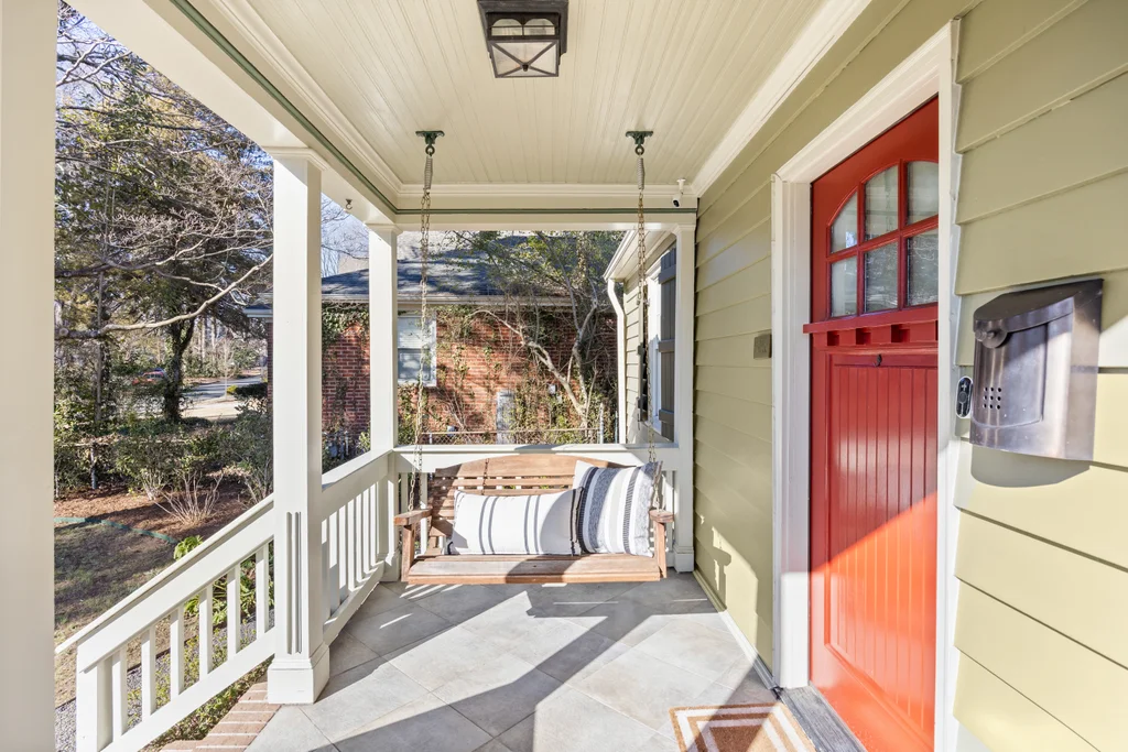 The front porch with swing is an inviting, classic welcome that sets the tone for everything inside. A light-filled living room with fireplace and true craftsman mantle and dining room with built-ins create a warm, comfortable gathering space.