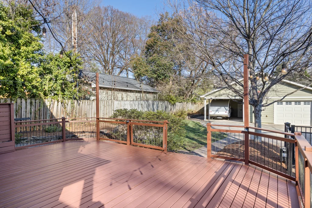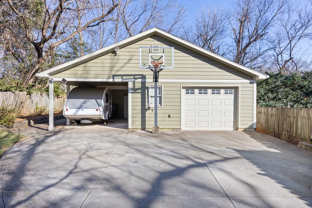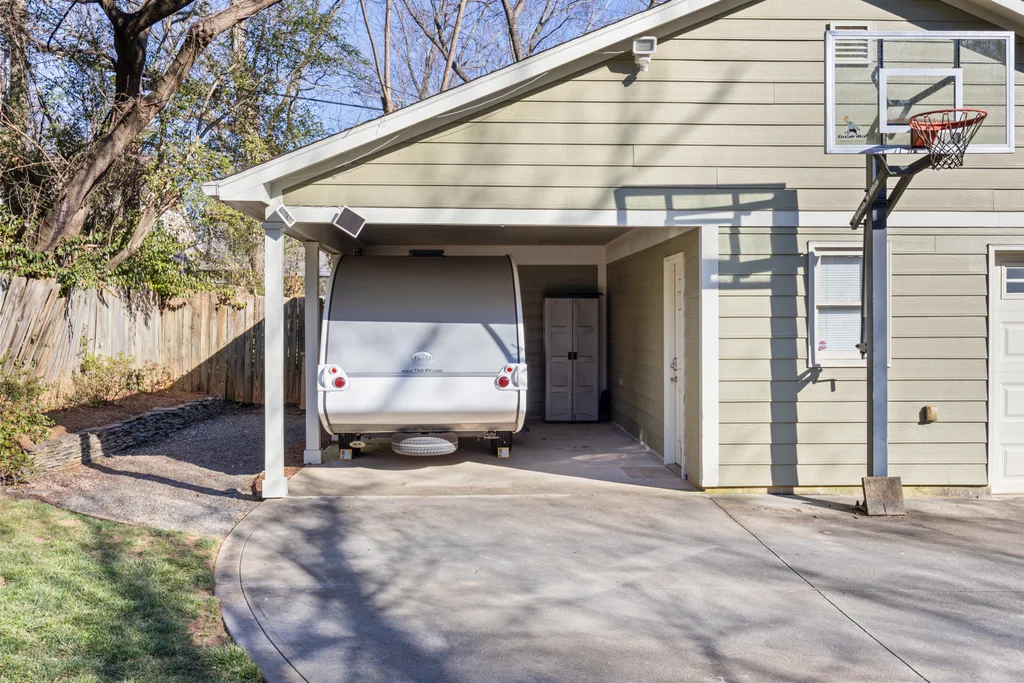 Then there's the backyard — A large deck, firepit, and fully fenced private yard with electric gate offer a genuine escape in the heart of the city. The oversized one car garage with epoxy floors and attached carport with storage are the kind of bonus that simply don't often come about in this neighborhood. Roof replaced late 2025, tankless water heater, newer windows, fiber cement siding. Shared driveway with easement on record.