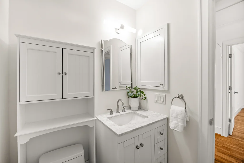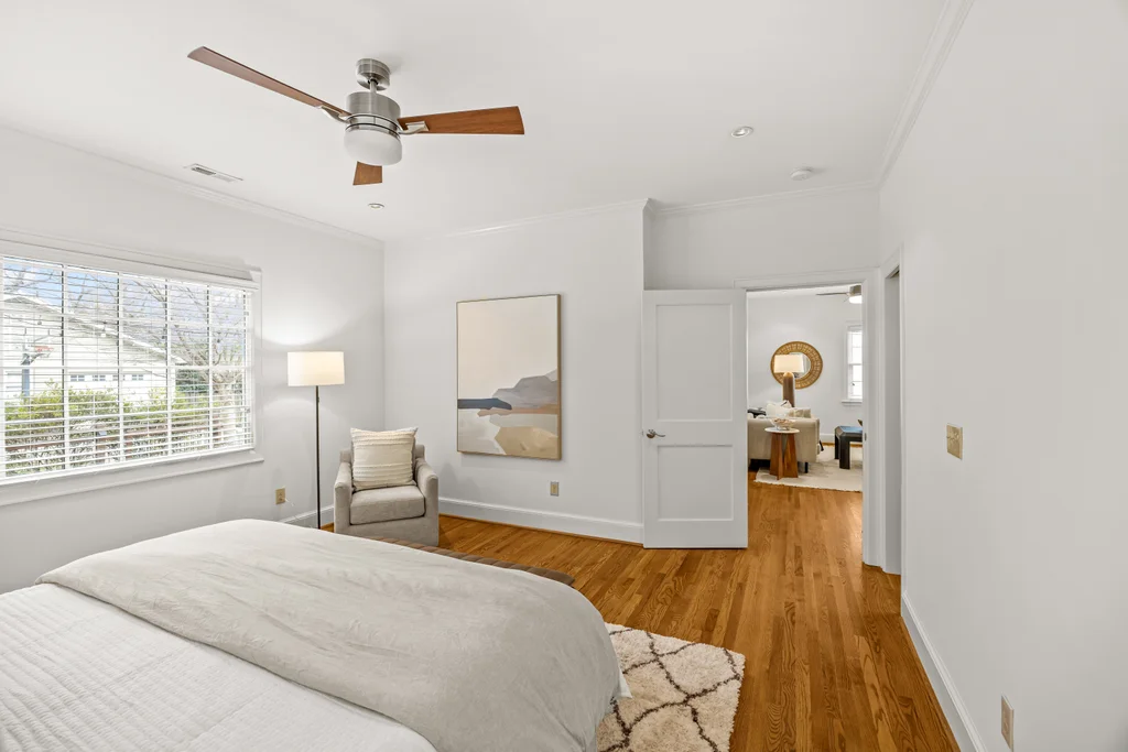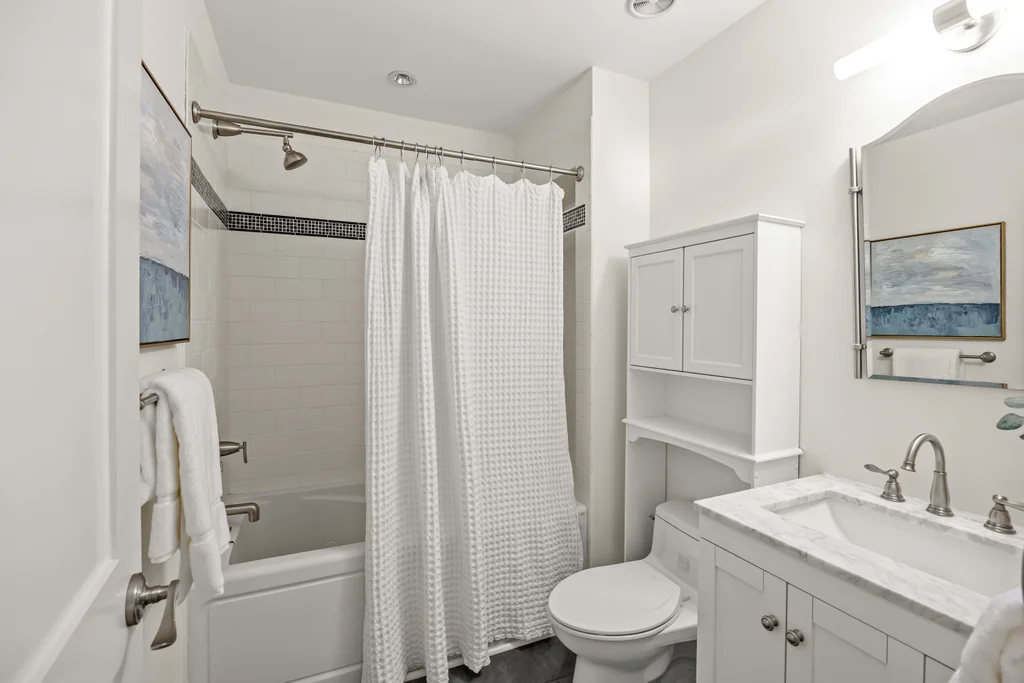 The primary suite is a true retreat offering a custom walk-in closet and spa-inspired bath with steam shower, double vanity, and private water closet. Two additional bedrooms and a renovated second bath round things out nicely. Wood floors, recessed lighting and upgraded finishes throughout.
