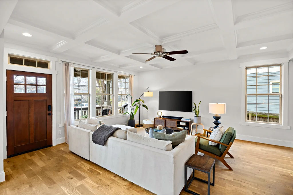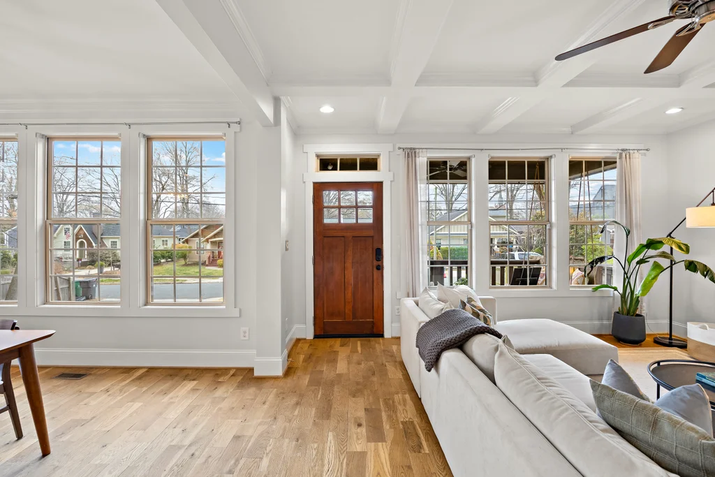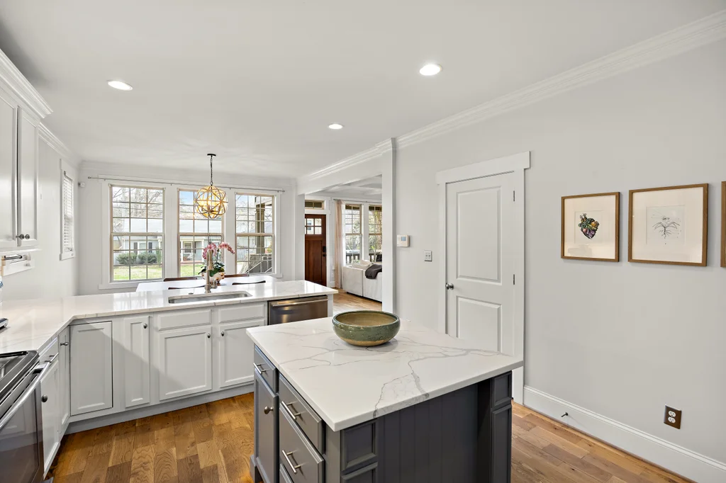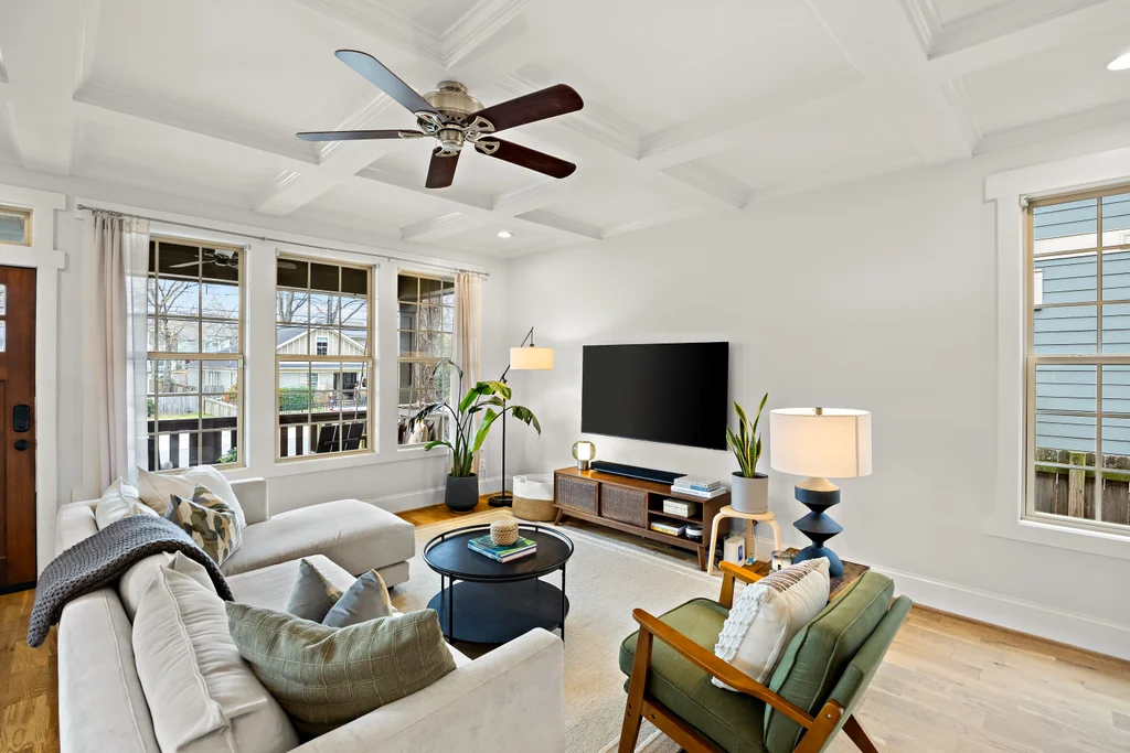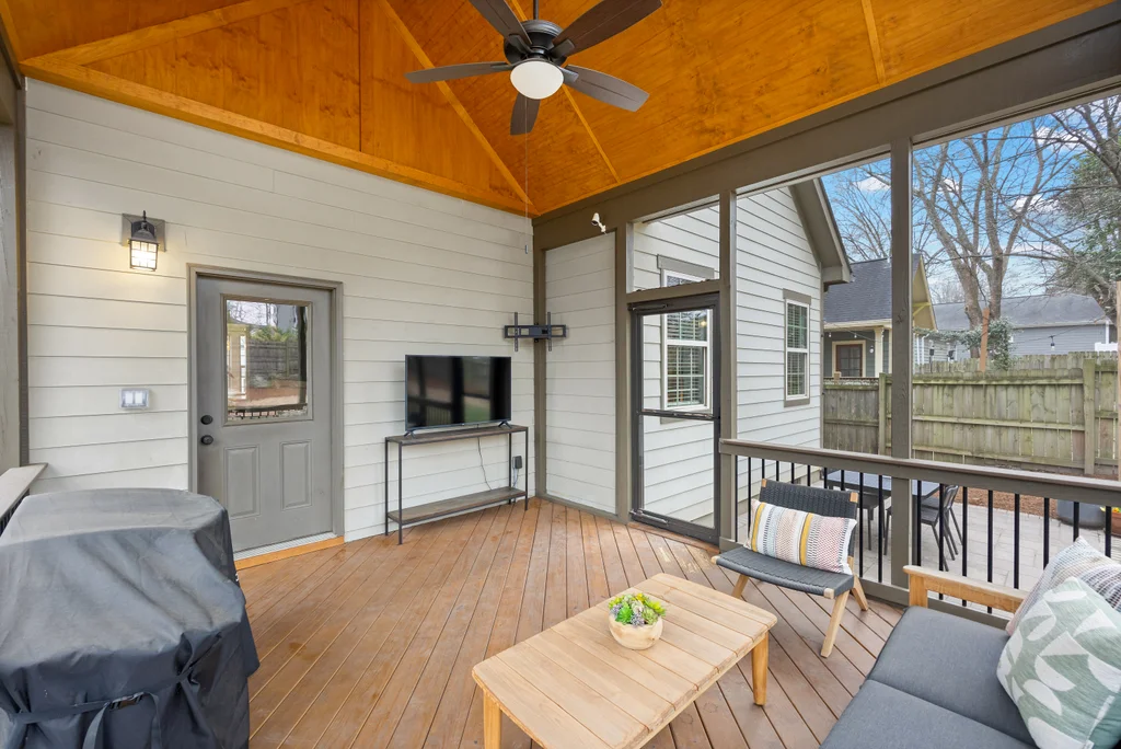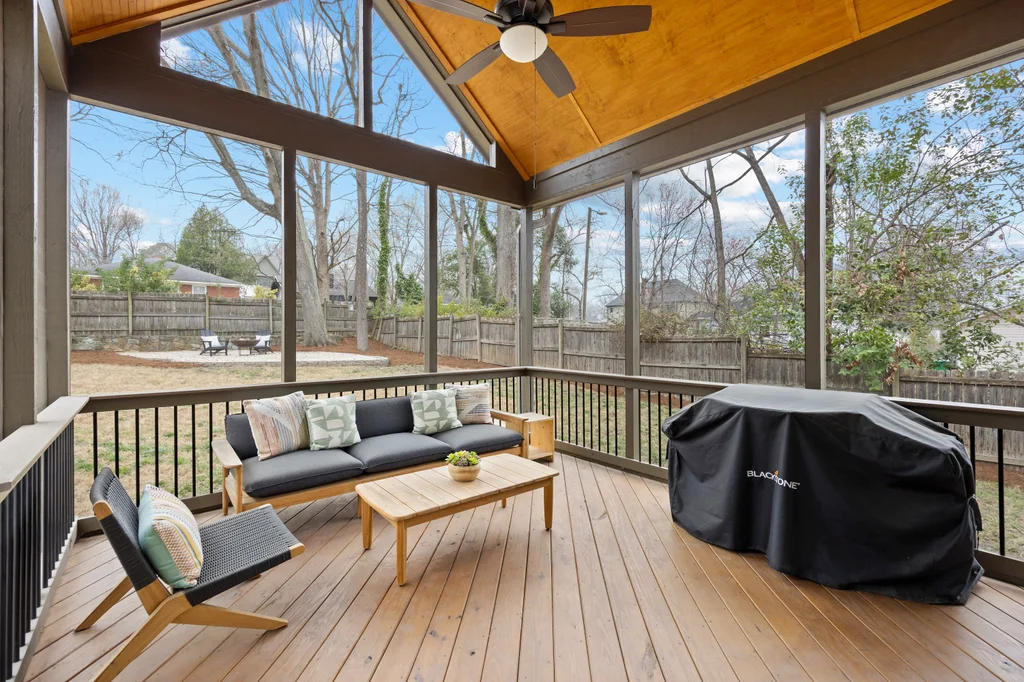 Charming, updated bungalow in the sought-after Villa Heights neighborhood! Step onto the inviting front porch and into the bright, open first floor, where large windows fill the kitchen and living areas with natural light. The living room boasts a coffered ceiling and a built-in bar perfect for entertaining. Lovely updated kitchen with stainless appliances, center island, and a walk in pantry. The expansive first-floor primary suite features a spacious closet, dual vanity, soaking tub, and separate shower. Upstairs, find two bedrooms, a loft ideal for an office or workout space, a guest bath, and ample attic storage. A convenient laundry/drop zone leads to an incredible screened porch overlooking the backyard, complete with a dining patio and fire pit. Move-in ready and ideally located - don't miss this Villa Heights gem!