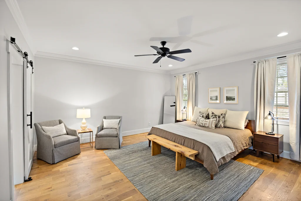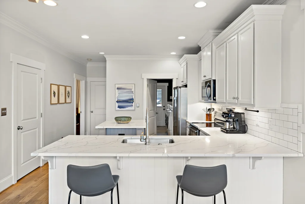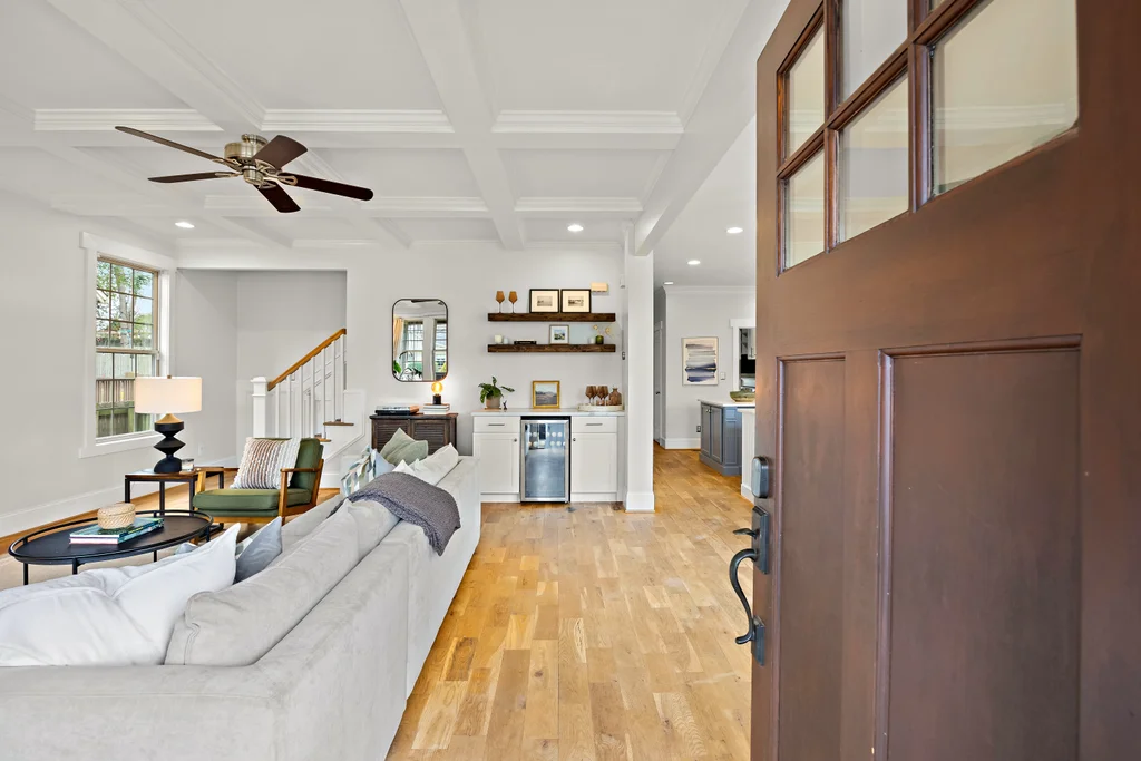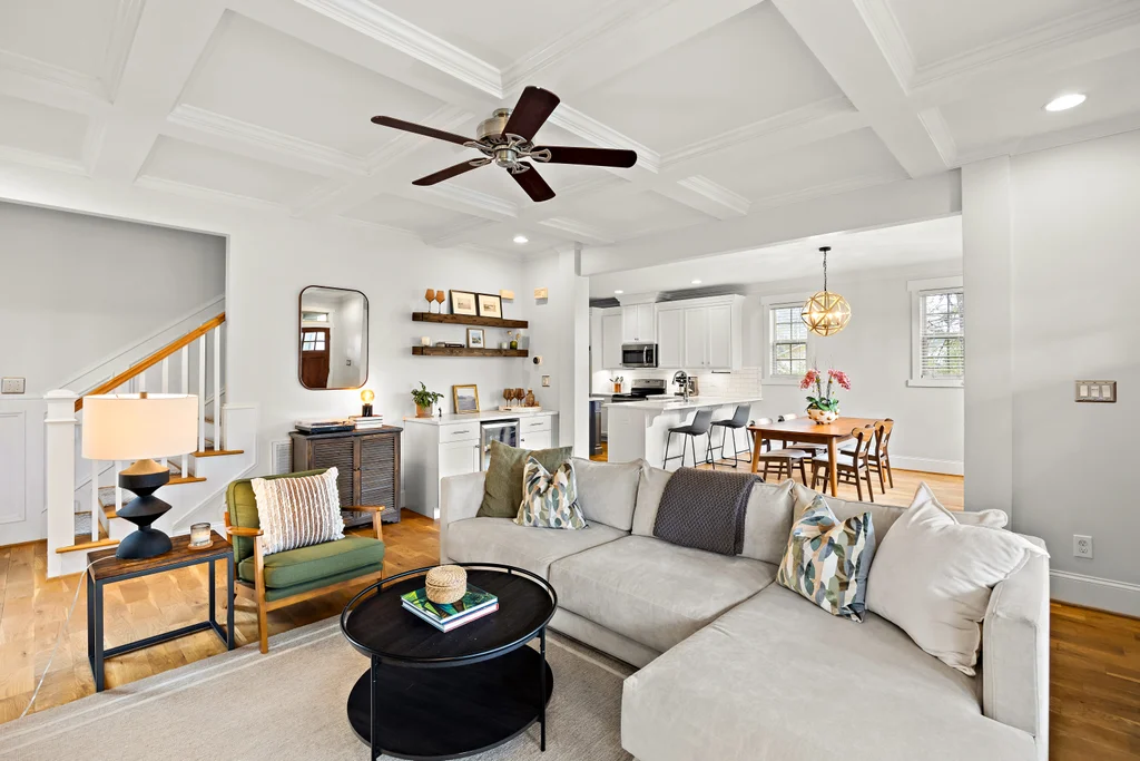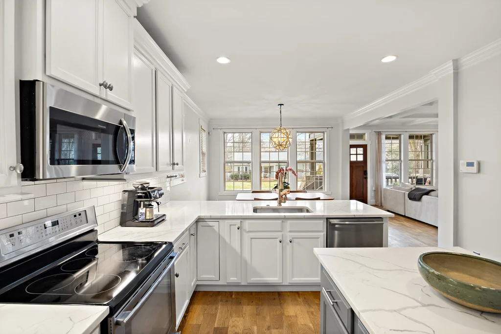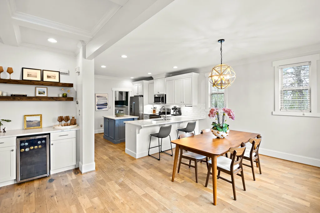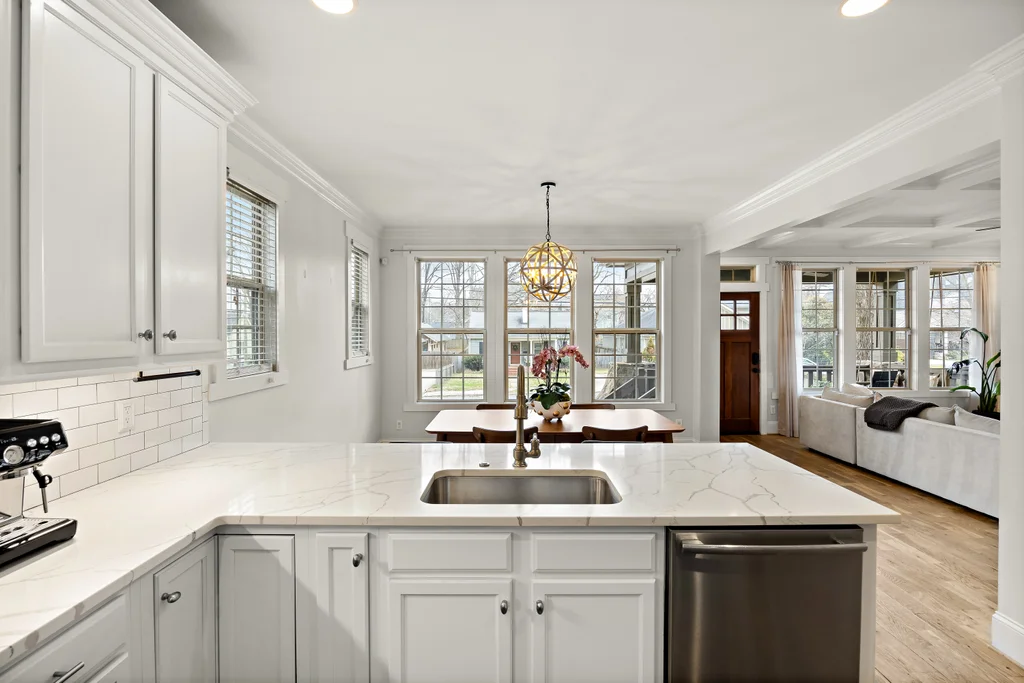 Charming, updated bungalow in the sought-after Villa Heights neighborhood! Step onto the inviting front porch and into the bright, open first floor, where large windows fill the kitchen and living areas with natural light. The living room boasts a coffered ceiling and a built-in bar perfect for entertaining. Lovely updated kitchen with stainless appliances, center island, and a walk in pantry. The expansive first-floor primary suite features a spacious closet, dual vanity, soaking tub, and separate shower. Upstairs, find two bedrooms, a loft ideal for an office or workout space, a guest bath, and ample attic storage. A convenient laundry/drop zone leads to an incredible screened porch overlooking the backyard, complete with a dining patio and fire pit. Move-in ready and ideally located - don't miss this Villa Heights gem!