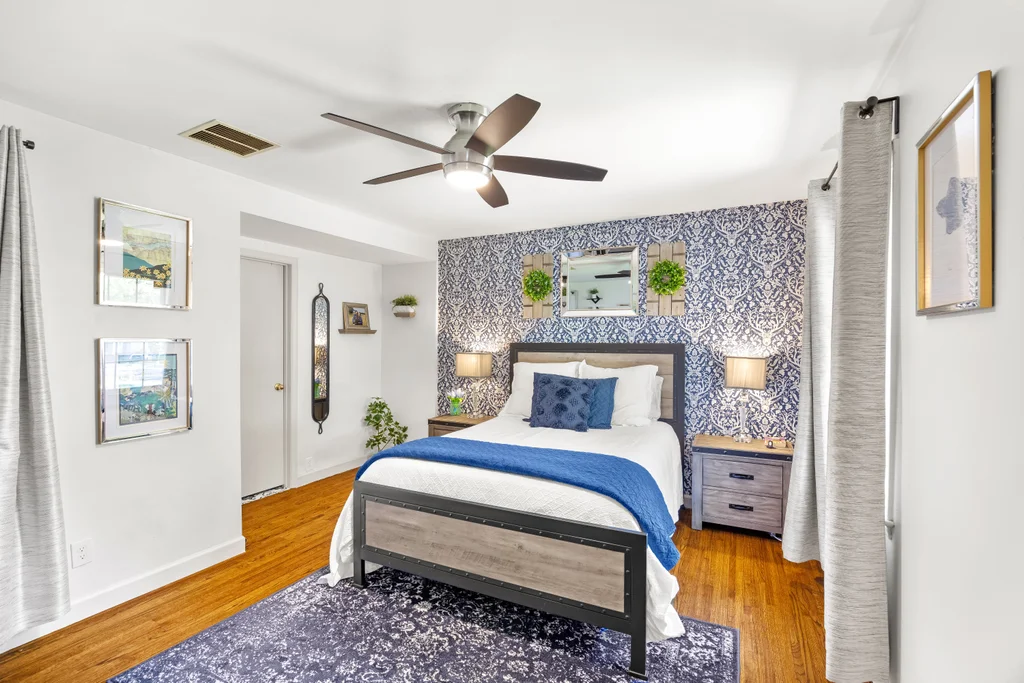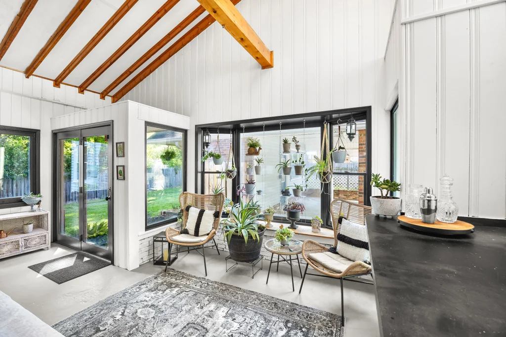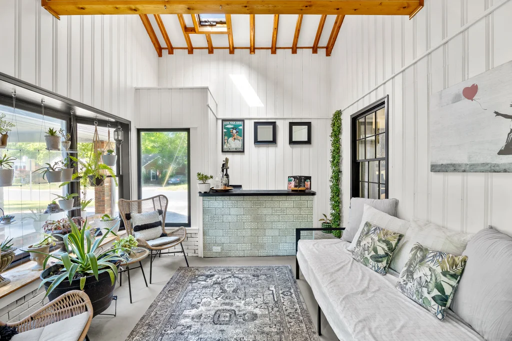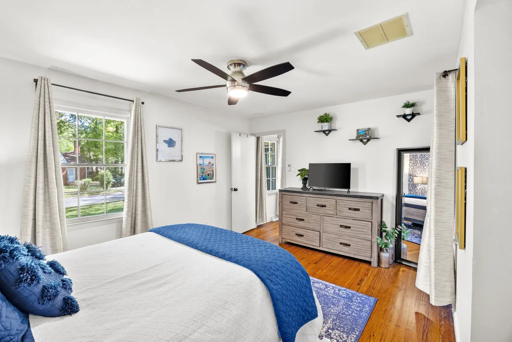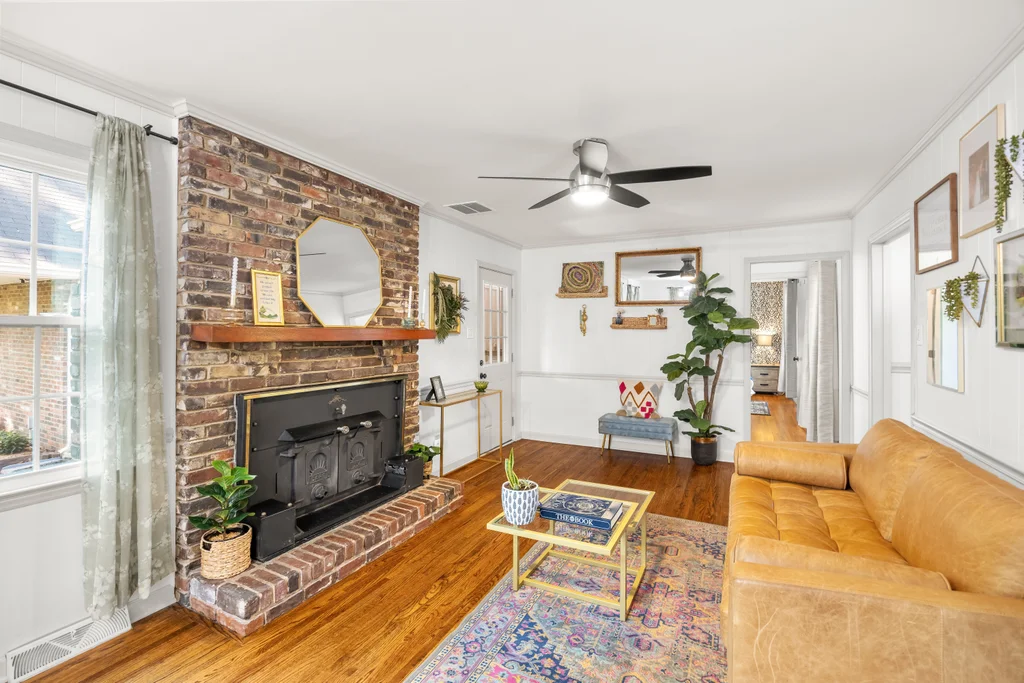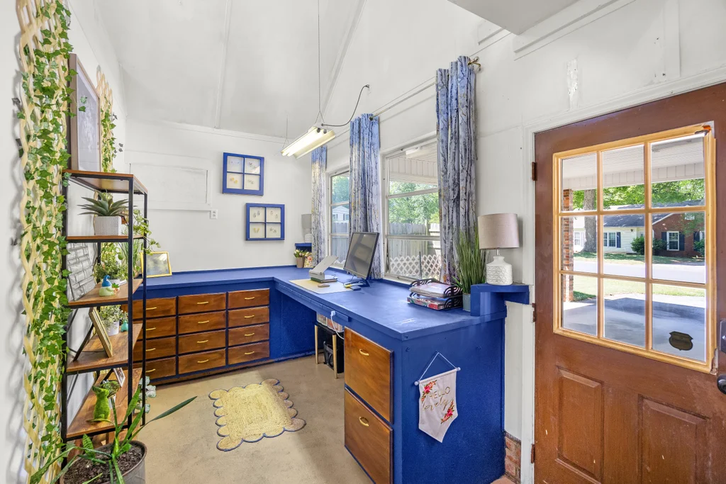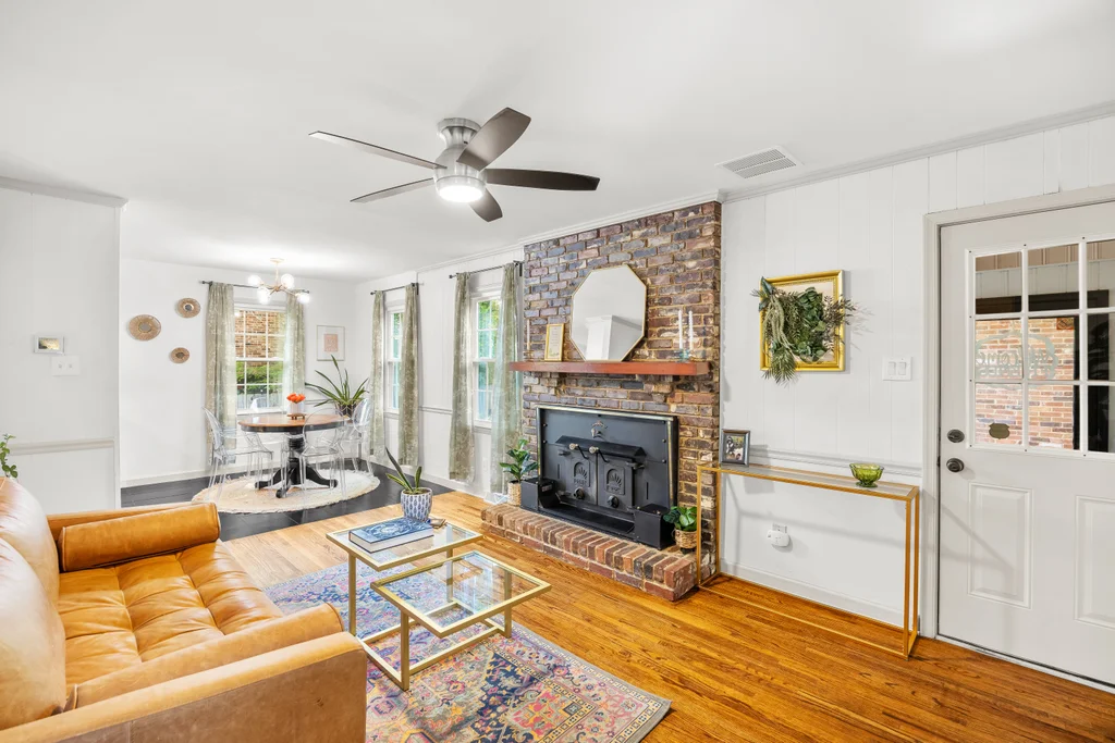 Character, space, and thoughtful updates come together in one effortlessly livable home in Shannon Park. Wood floors flow throughout, setting the tone for a layout that feels both fresh and full of warmth. The bright living room — bathed in natural light from windows on three sides — anchors the main level with gold fixtures, built-in shelving, and large bay window. The beautifully renovated kitchen shines with white shaker cabinets, quartz countertops, and stainless appliances, connecting seamlessly through a cozy breakfast room to the casual den w/ fireplace. The 225 sq ft sunroom (not included in the heated square footage) steals the show with a built-in bar, bay window, and direct access to both the carport and a fully fenced backyard — the perfect size for easy enjoyment or hosting a party. Spacious bedrooms deliver real versatility: a main-floor primary suite with walk-in closet, plus two generous upstairs bedrooms each with closets and storage. Renovated bathrooms for all. The two-car carport comes with a bonus workroom that’s ready to become your dream home office or more. With a newer HVAC (2023), 2016 roof, and updates throughout, this one is ready for you.