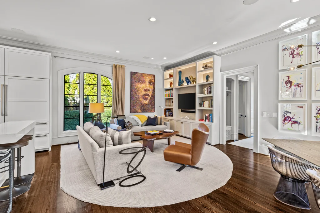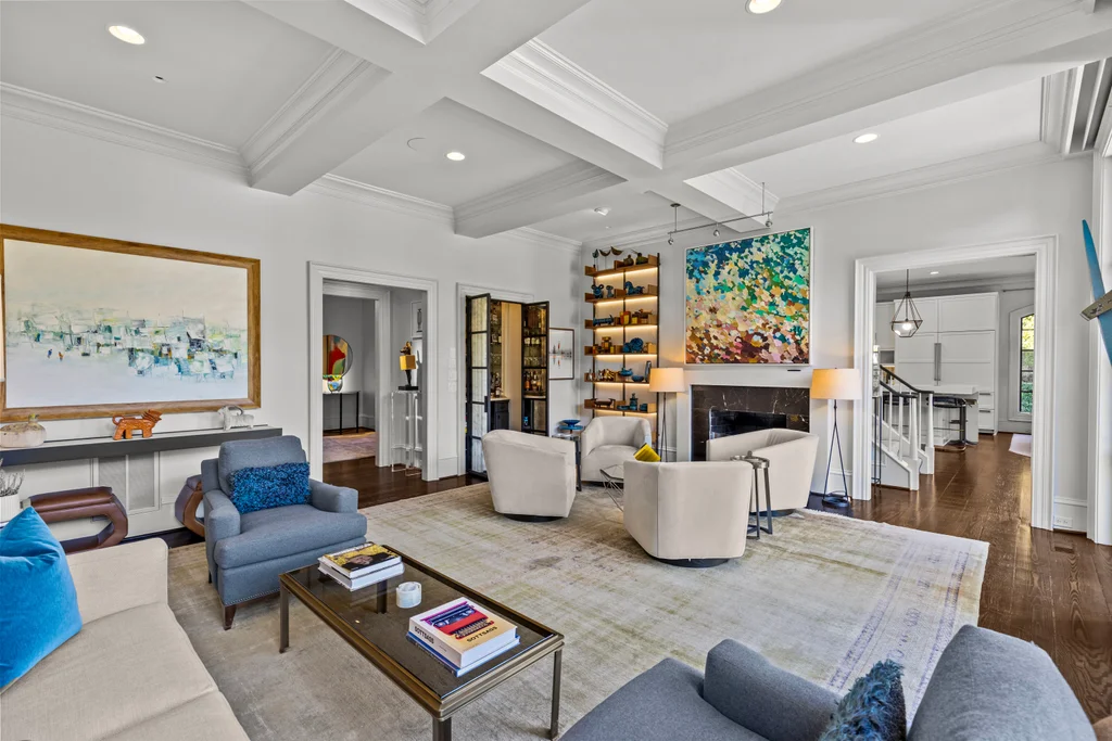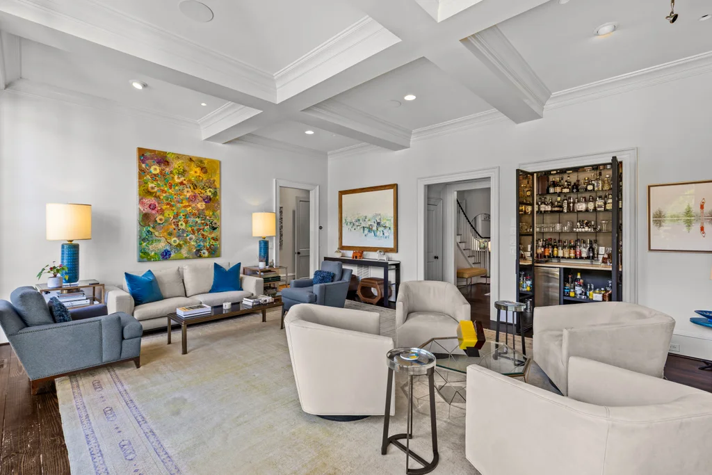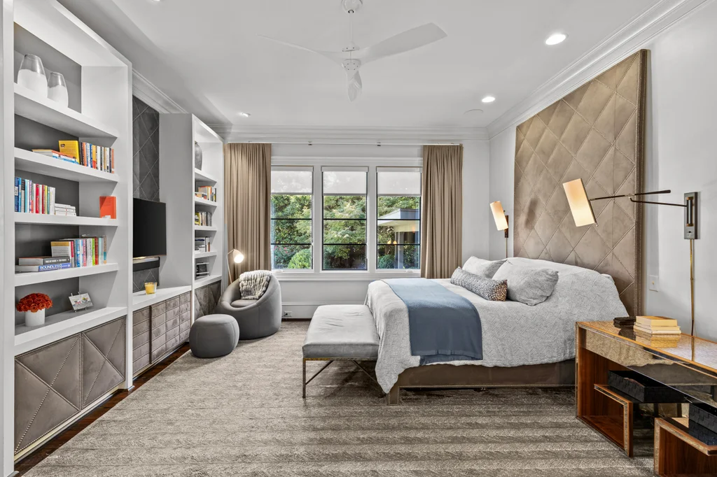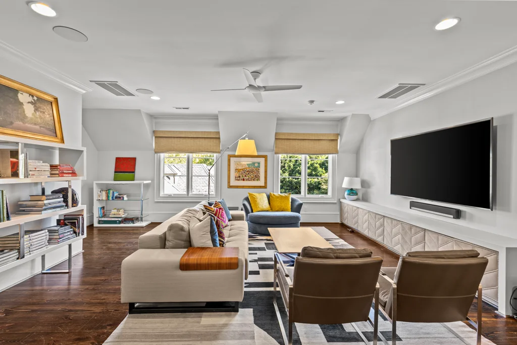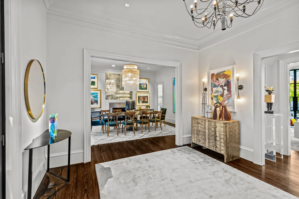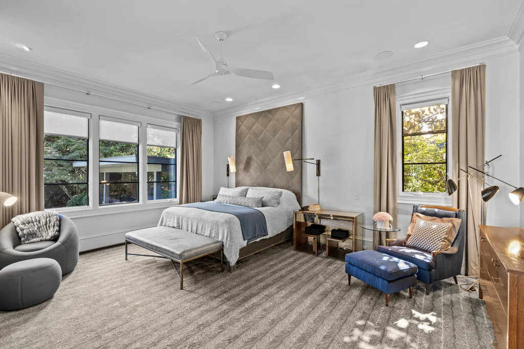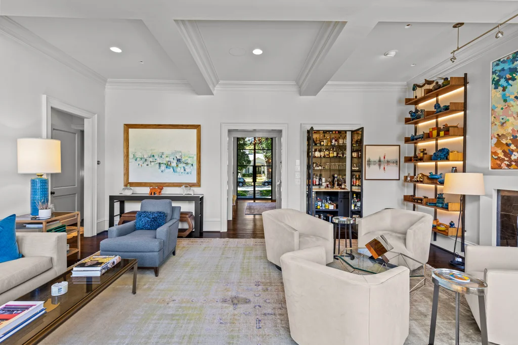 The main floor primary suite offers private garden views, dual closets, built in cabinetry, custom bed, and a spa-like bath. Upstairs four large ensuite bedrooms, an additional office or fifth bedroom, and a large central living room are functional and beautiful. The third floor includes a full gym with sauna and plumbing for a plunge pool. Control 4 whole home automation and museum quality lighting are just a few of the special touches.