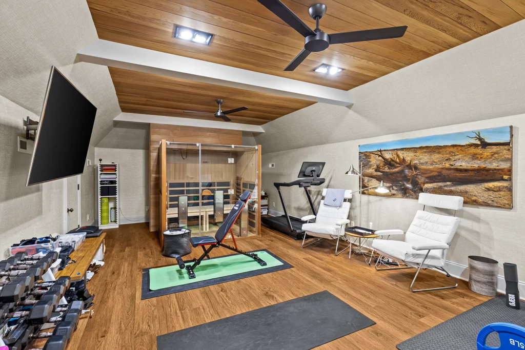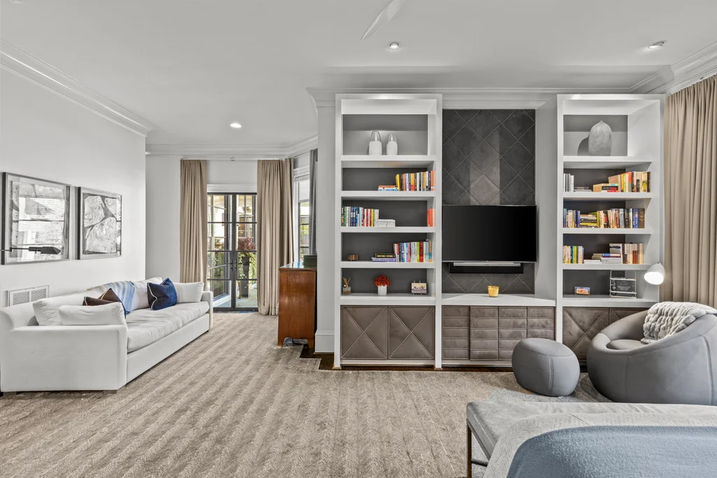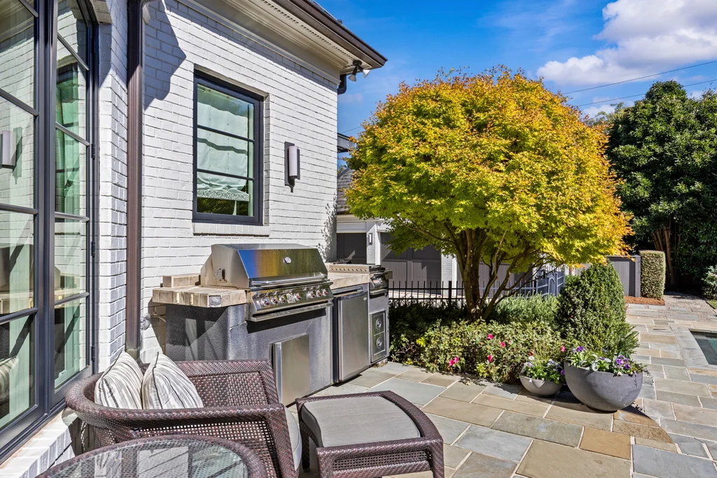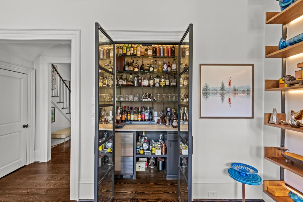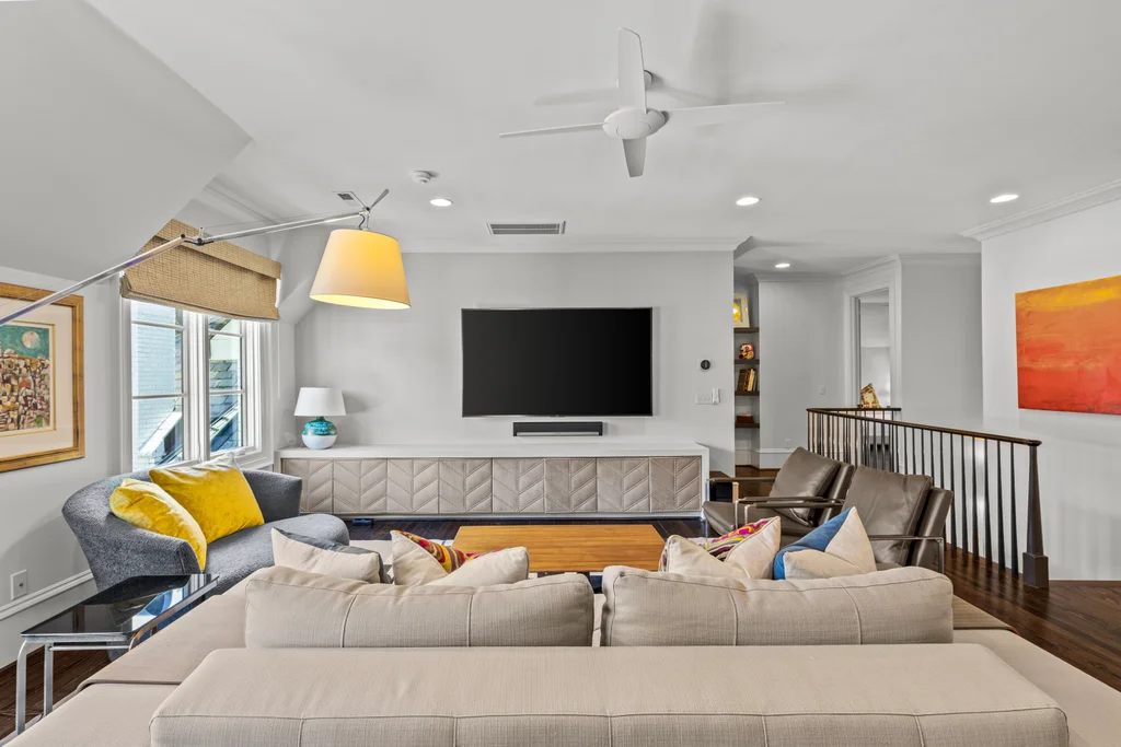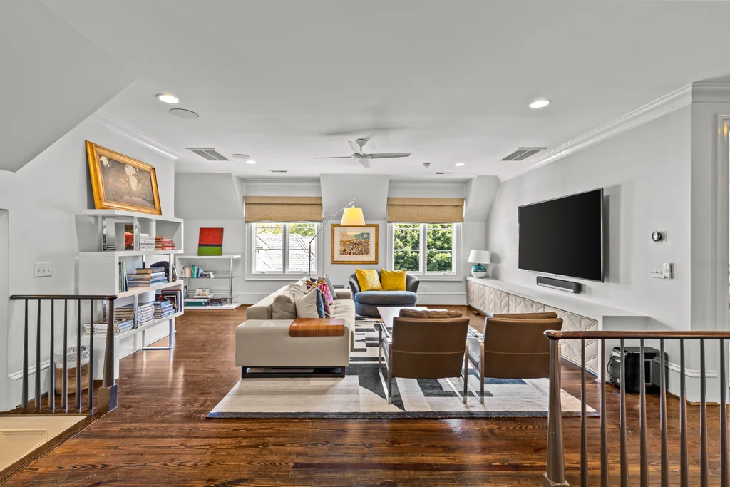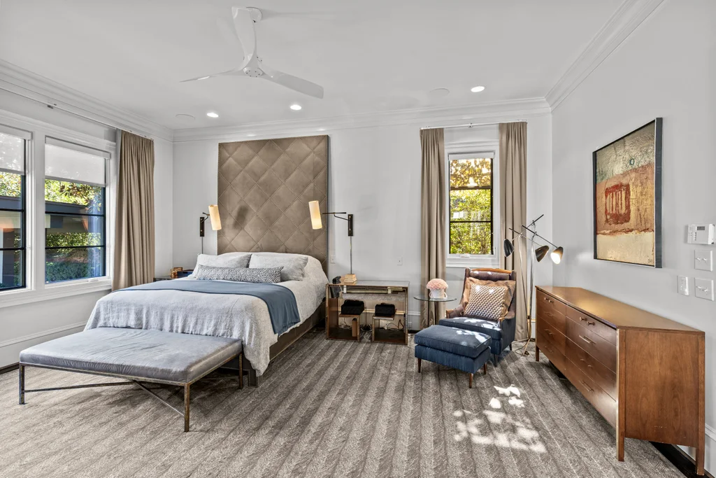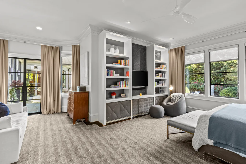 The main floor primary suite offers private garden views, dual closets, built in cabinetry, custom bed, and a spa-like bath. Upstairs four large ensuite bedrooms, an additional office or fifth bedroom, and a large central living room are functional and beautiful. The third floor includes a full gym with sauna and plumbing for a plunge pool. Control 4 whole home automation and museum quality lighting are just a few of the special touches.