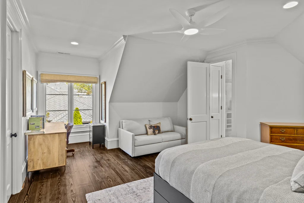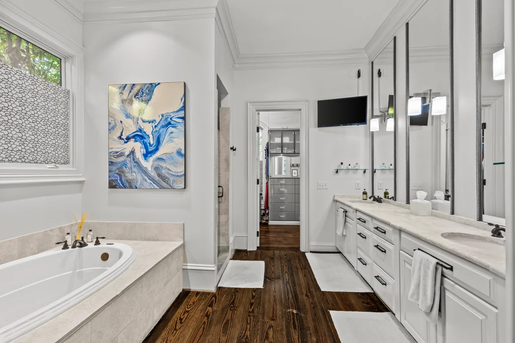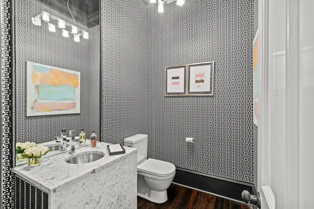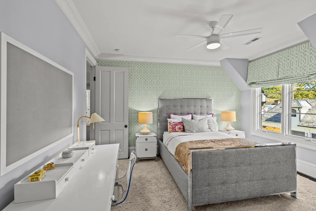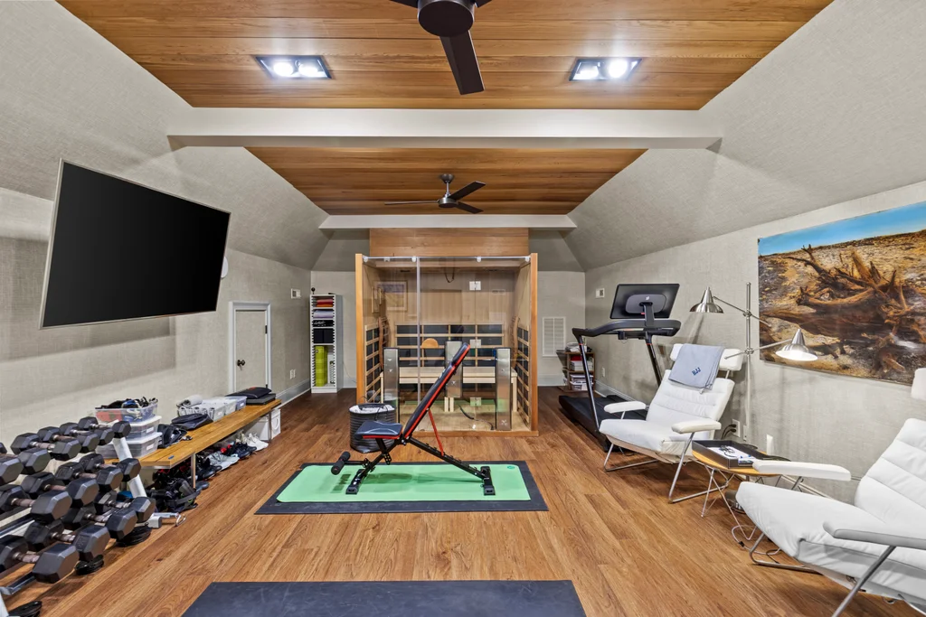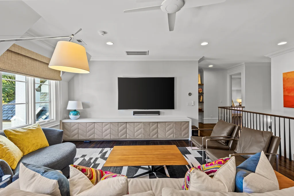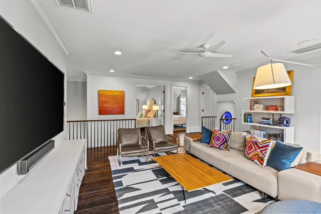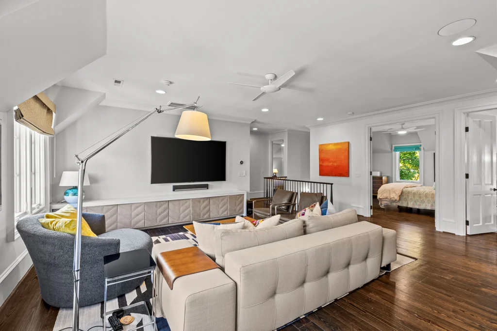 The main floor primary suite offers private garden views, dual closets, built in cabinetry, custom bed, and a spa-like bath. Upstairs four large ensuite bedrooms, an additional office or fifth bedroom, and a large central living room are functional and beautiful. The third floor includes a full gym with sauna and plumbing for a plunge pool. Control 4 whole home automation and museum quality lighting are just a few of the special touches.