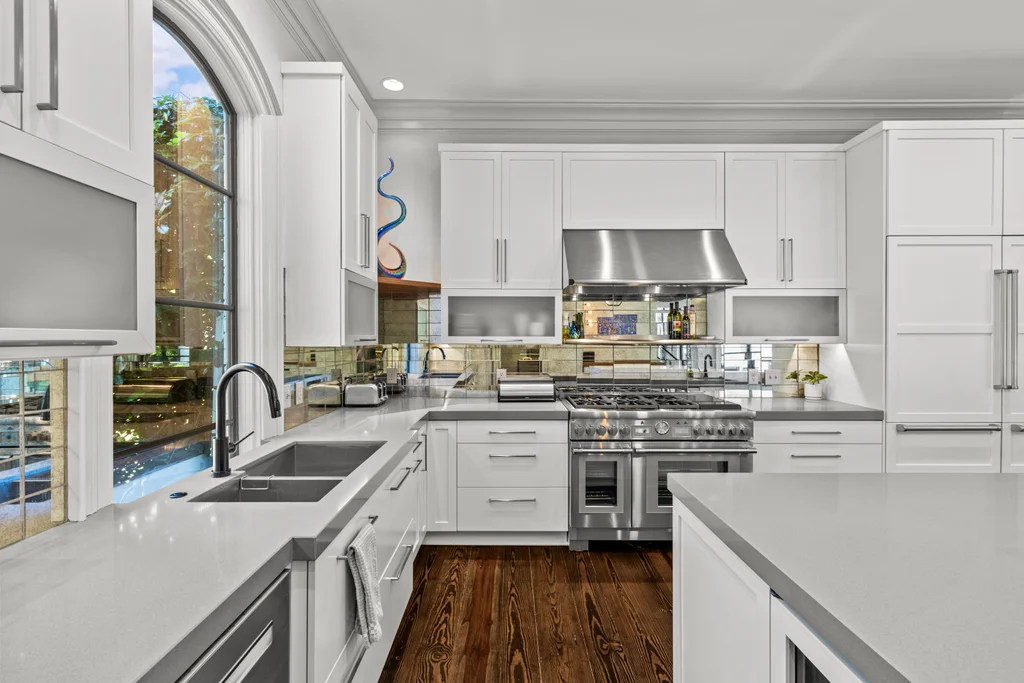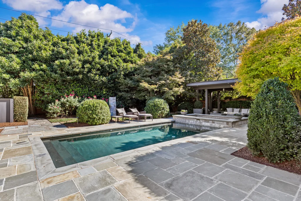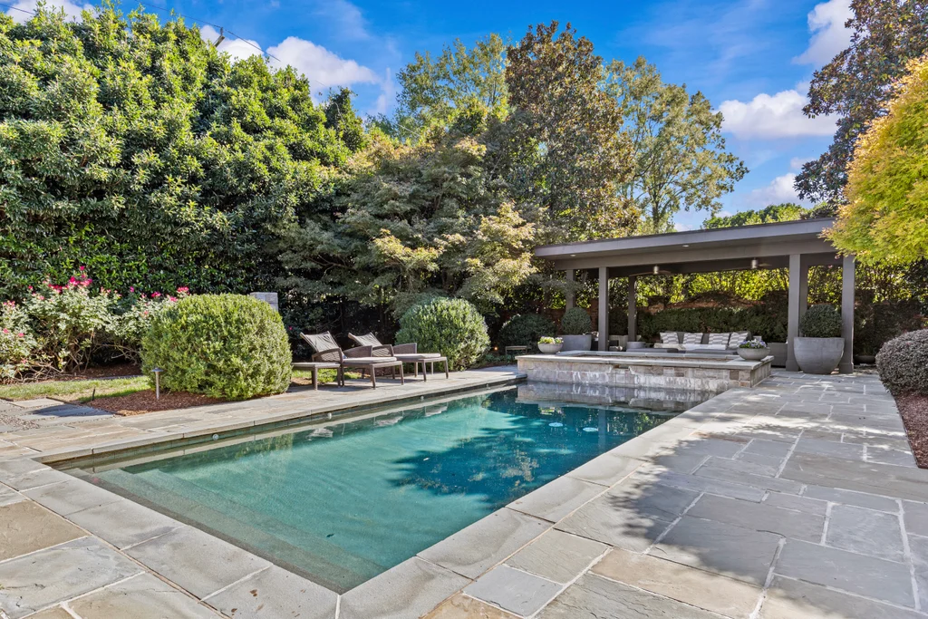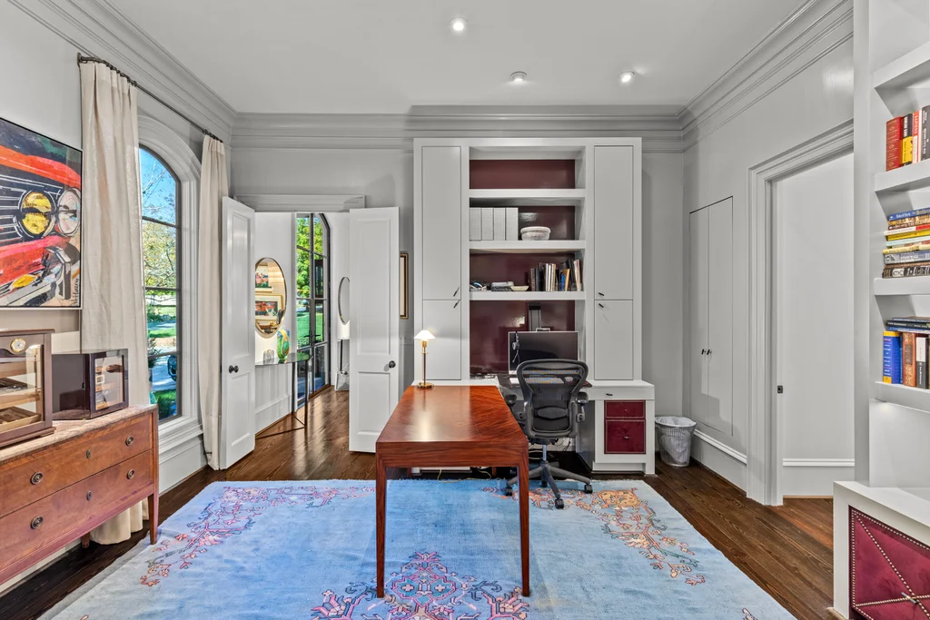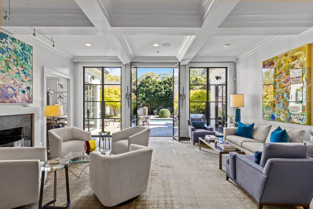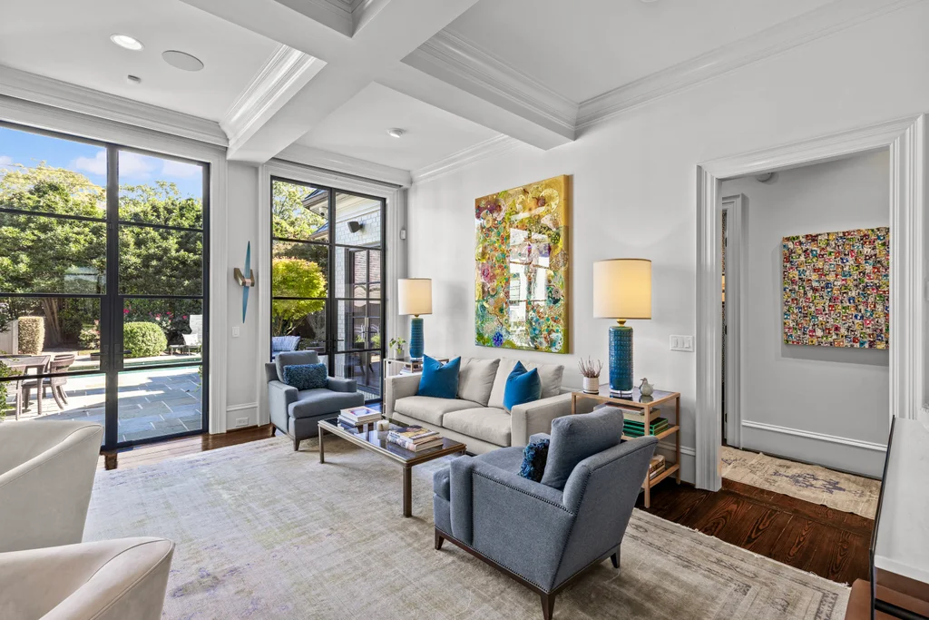 A rare mix of modern comfort and classic Eastover character, this home balances scale and warmth with an easy, versatile floor plan. Eleven-foot ceilings, beautiful millwork, and five sets of steel and glass doors bring natural light into every corner, opening the home to a private bluestone terrace, pool, spa, and pergola.