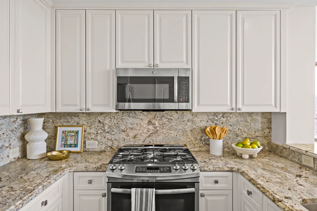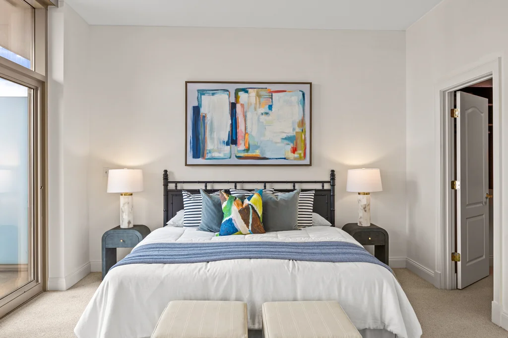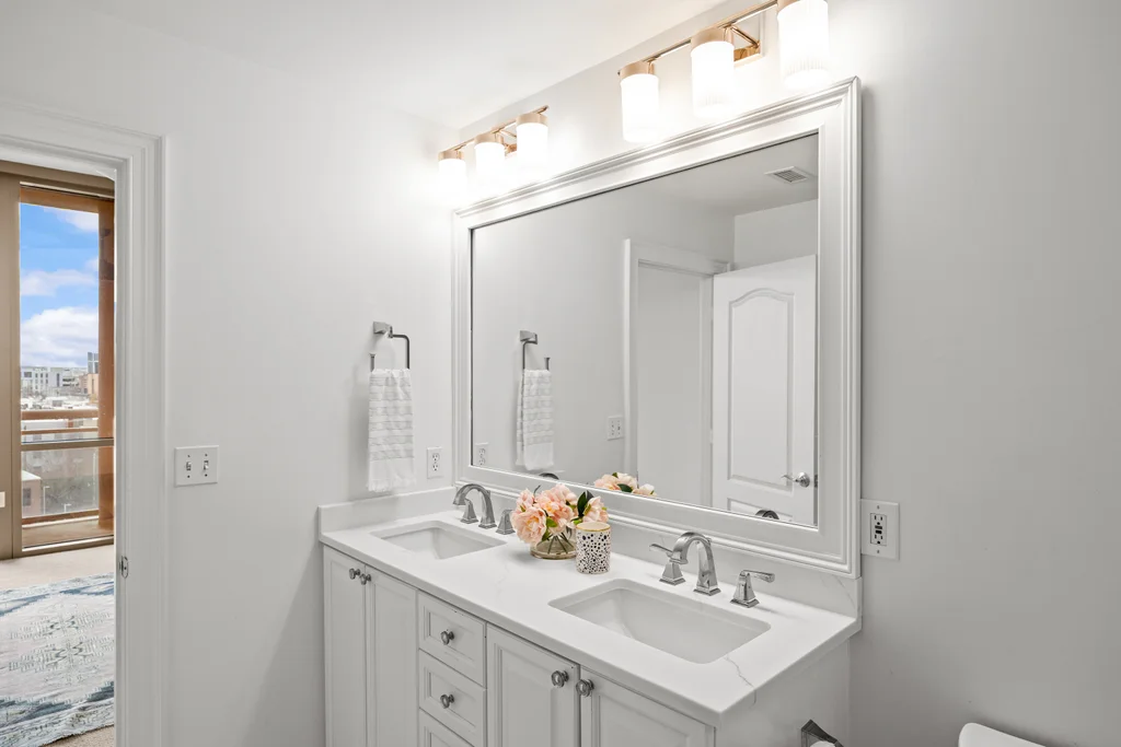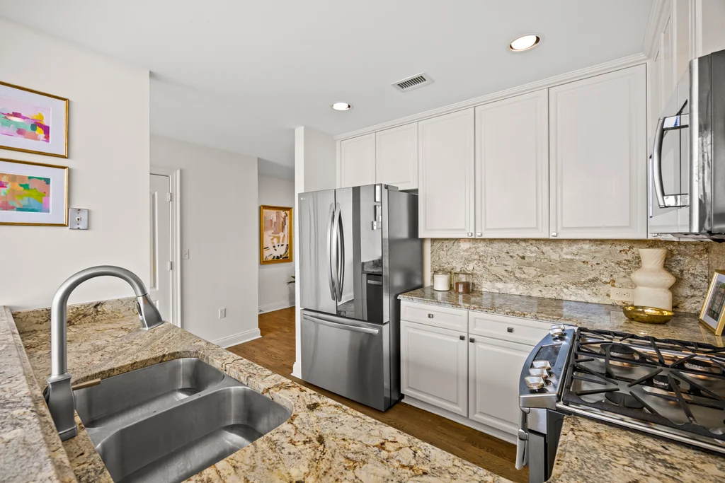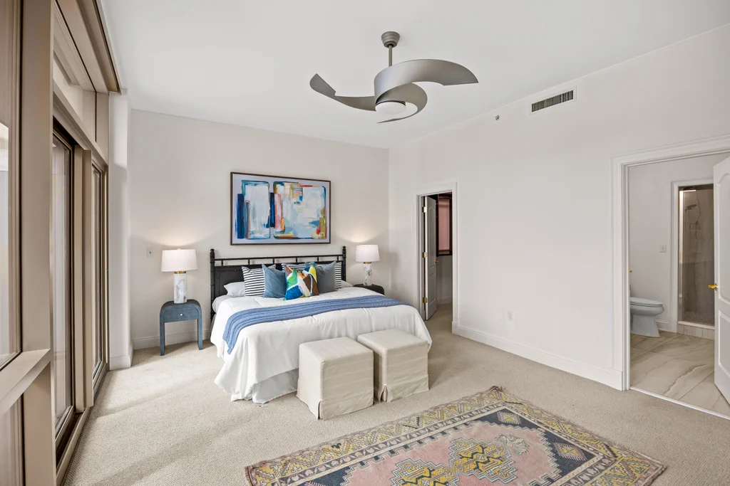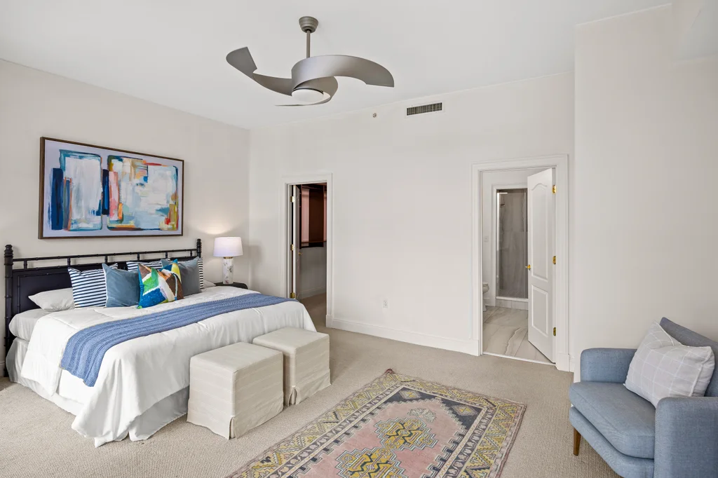The primary bedroom retreat is just that- a private balcony, large walk-in closet designed for maximum functionality, and renovated bath w/ white double vanity, quartz counters & a large walk in shower. 2024 HVAC and water heater for ease of mind and living. This unit comes with two deeded parking spaces -a huge benefit in the bustling south end.